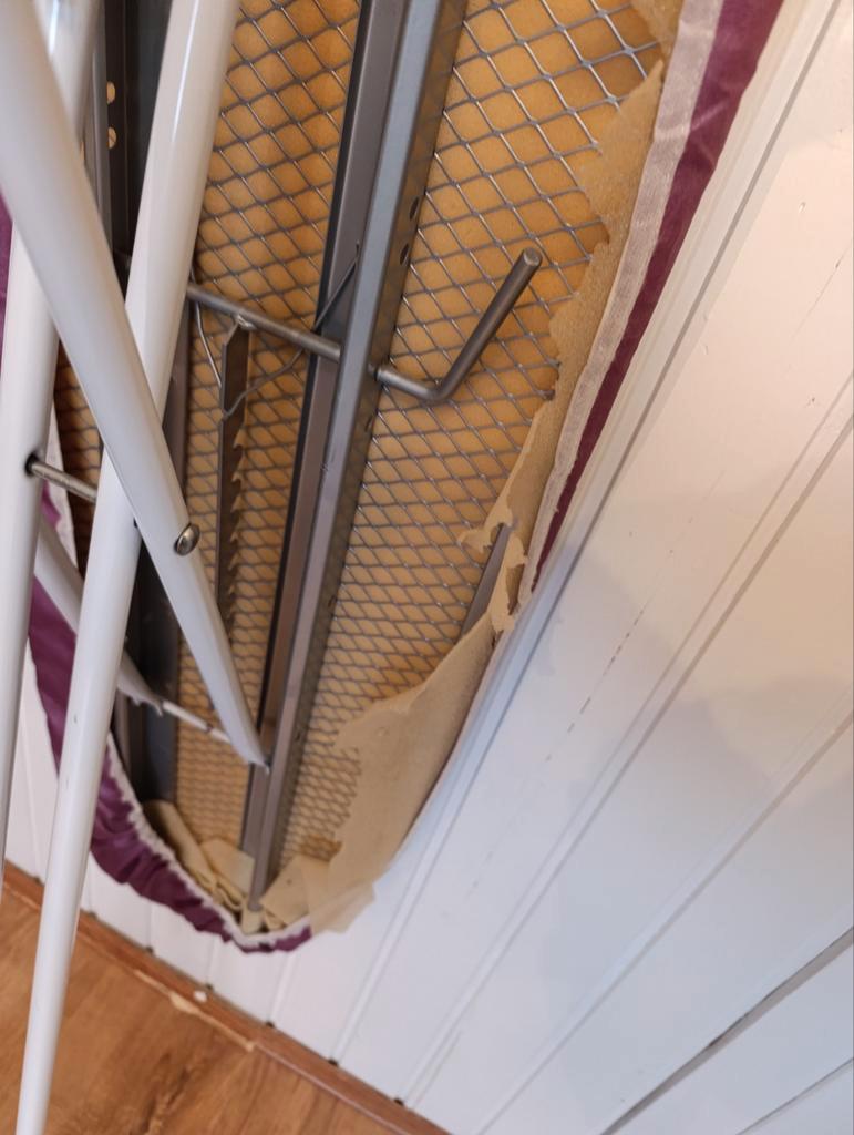 Gebruikte strijkplank. Ideaal voor kleine ruimtes. Heeft wat gebruikssporen, maar is nog functioneel. Bekijk de foto''s voor de