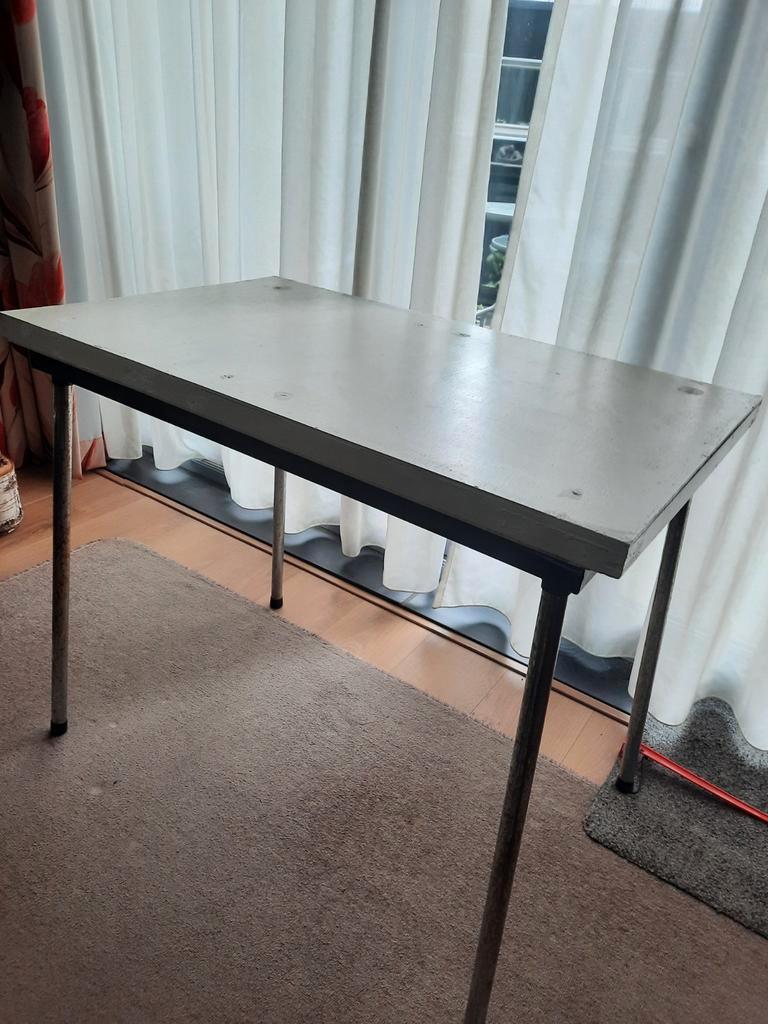Eenvoudig maar zeer stevig tafeltje, ideaal voor hobby projecten of als klustafel. Het tafelblad is beige/grijs en het onderstel i