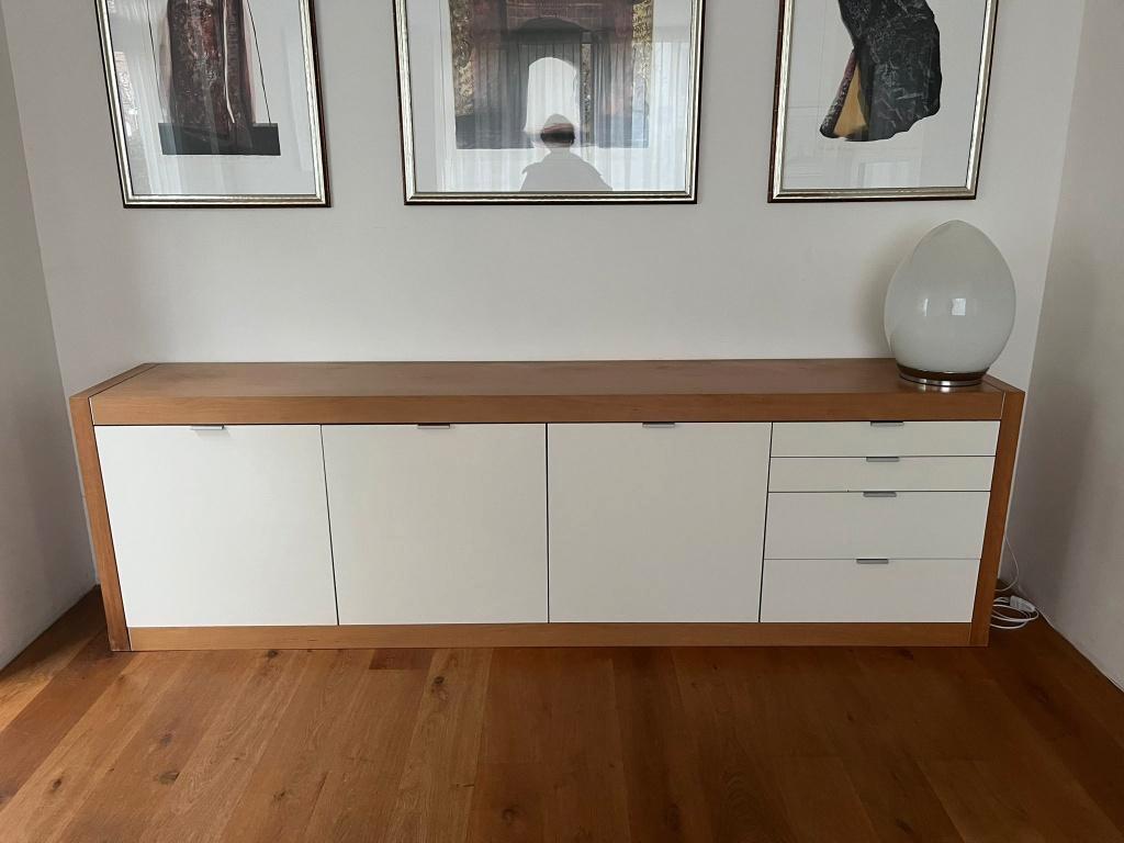 Gratis af te halen pastoe dressoir met beschadigingen (zie foto''s). Het dressoir is van binnen zwart en de deuren zijn wit ges