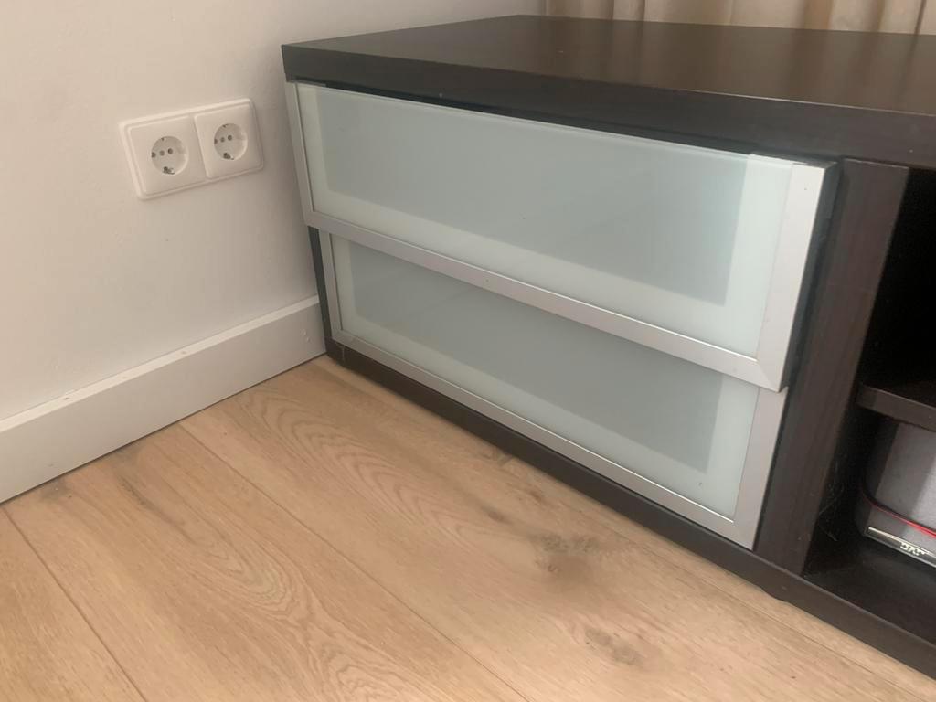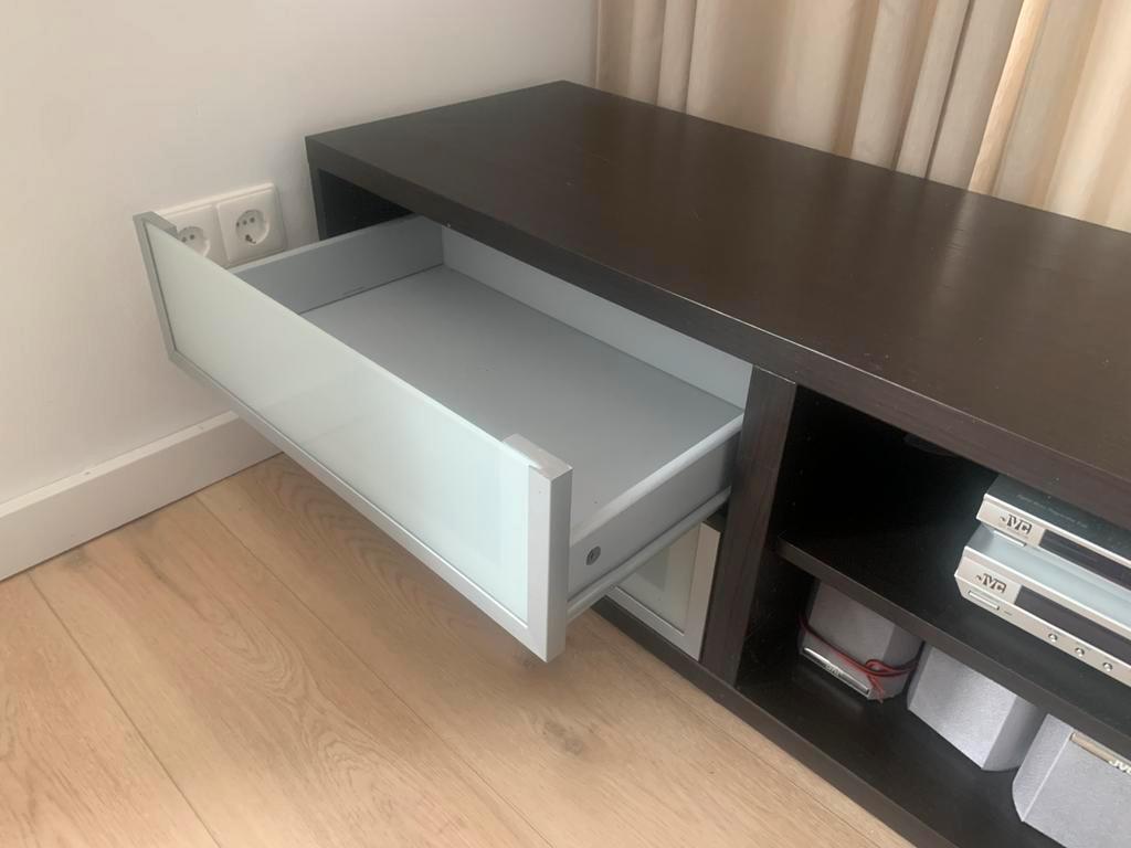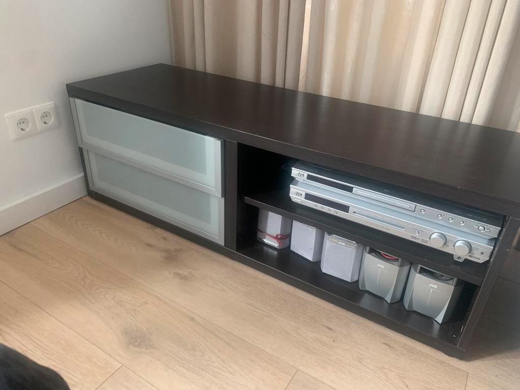 Tv meubel b 120. D 40. H 37. Zwart mdf met 2 kunststof lades is hier overbodig geworden . Afhalen in centrum raalte niet voor hand