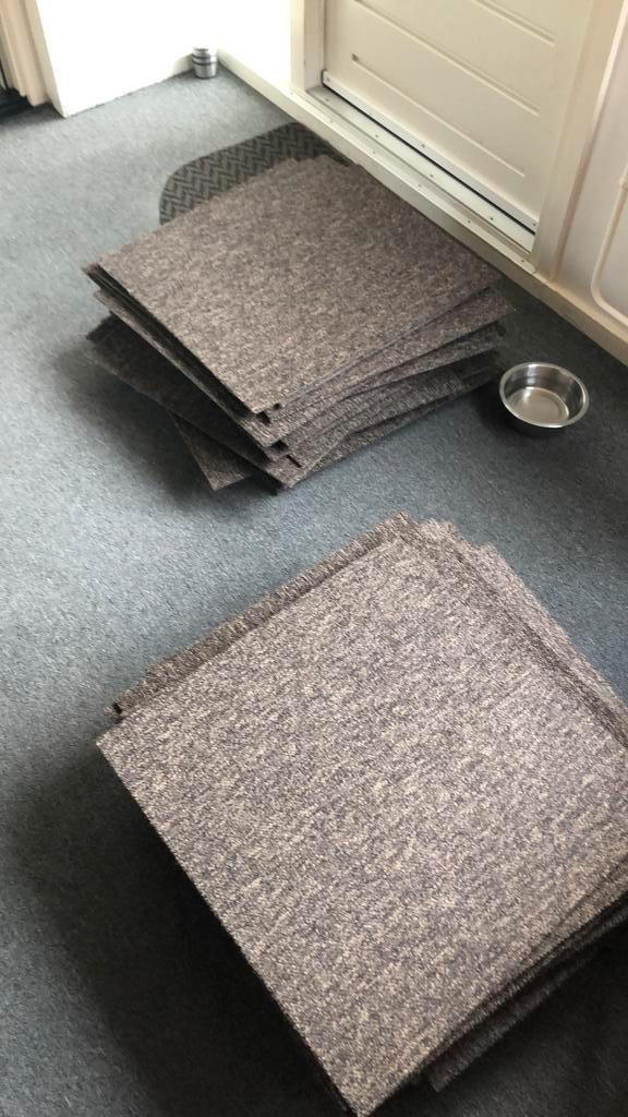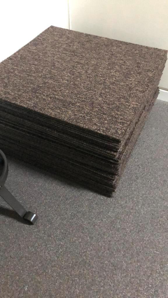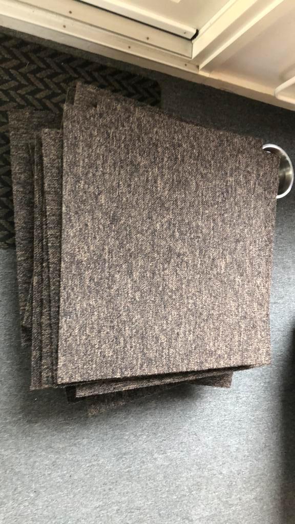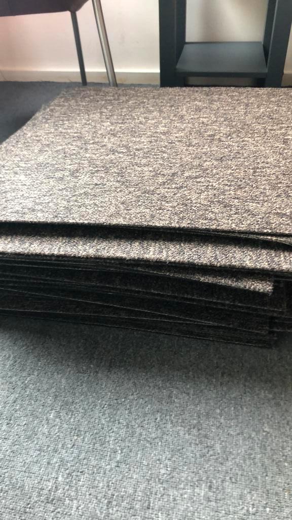 Tapijttegels 40 m2 (circa 85 stuks van 50 cm bij 50 cm). Zijn allemaal hele gebruikte tegels op een kantoor. Zijn gebruikt, maar n