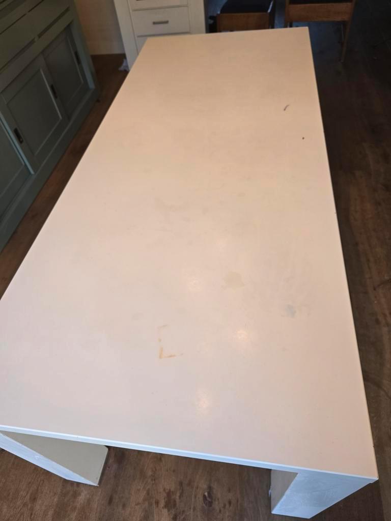 Mooie witte eettafel gratis aangeboden. Wegens verhuizing hebben we ruimte voor een grotere eettafel. De tafel is gebruikt en heef