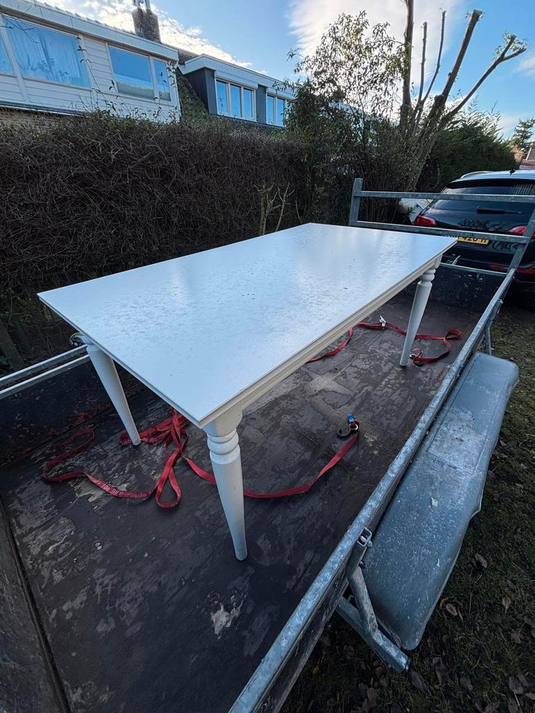 Gratis af te halen: uitschuifbare eettafel. Ideaal voor grotere gezelschappen. Tafel is gebruikt, maar nog in prima staat. Afmetin