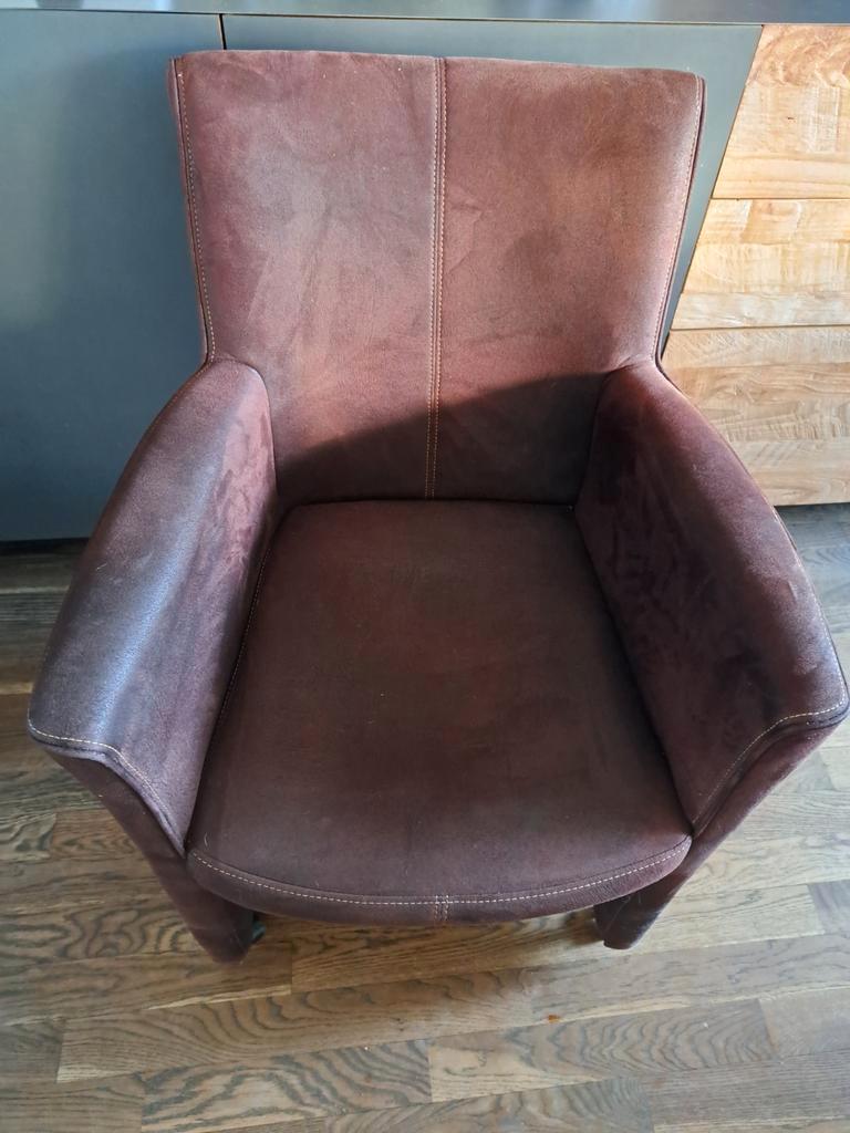 Vier luxe stoelen, gratis af te halen. Let op: de zittingen zijn doorgezakt. De stoelen komen uit een huis met een hond, dus mogel