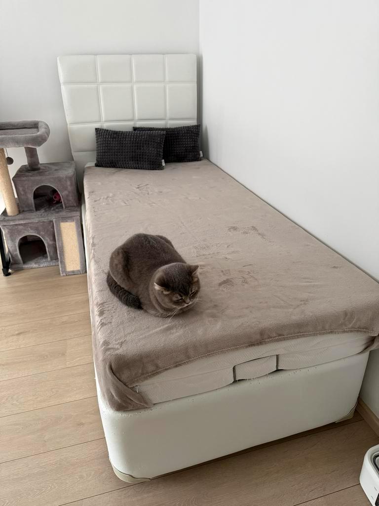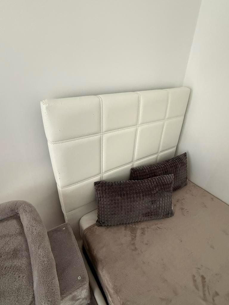 Een comfortabel eenpersoonsbed met een stijlvol hoofdbord. Het bed is in goede staat en biedt een goede nachtrust. Ideaal voor een