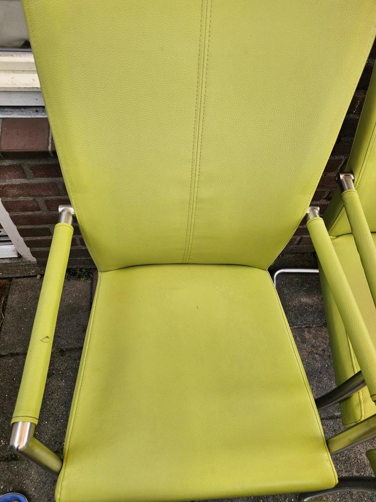 Set van 4 groene vintage stoelen met chromen frame. De stoelen zijn in goede staat en hebben een comfortabele zitting. Ideaal voor