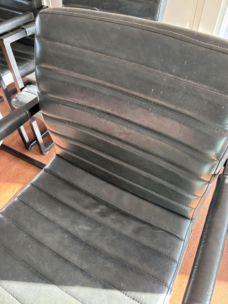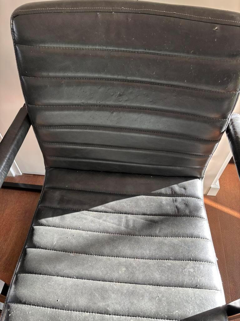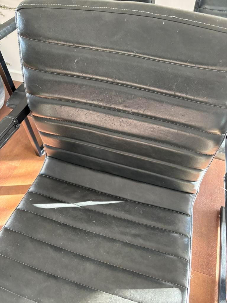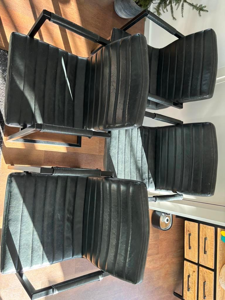 Gratis af te halen. 4 Zwarte eettafelstoelen. Gebruikt en beschadigingen van kattennagels.