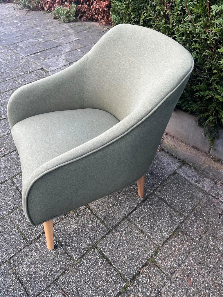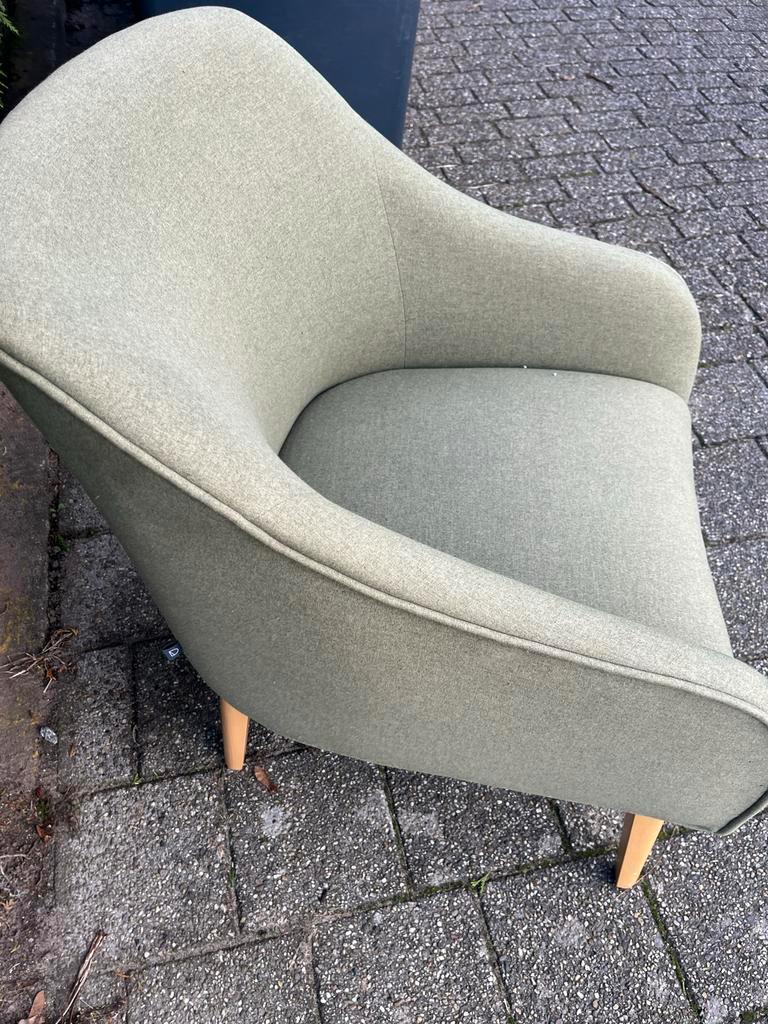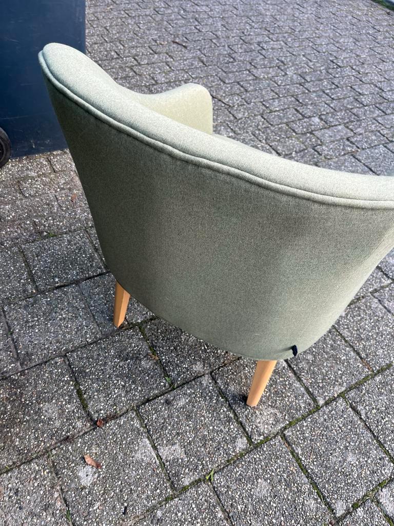 Gratis af te halen: comfortabele groene fauteuil met houten poten. De stoel is in goede staat en perfect voor een gezellige zithoe