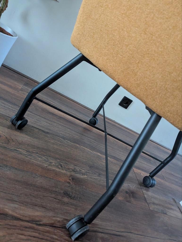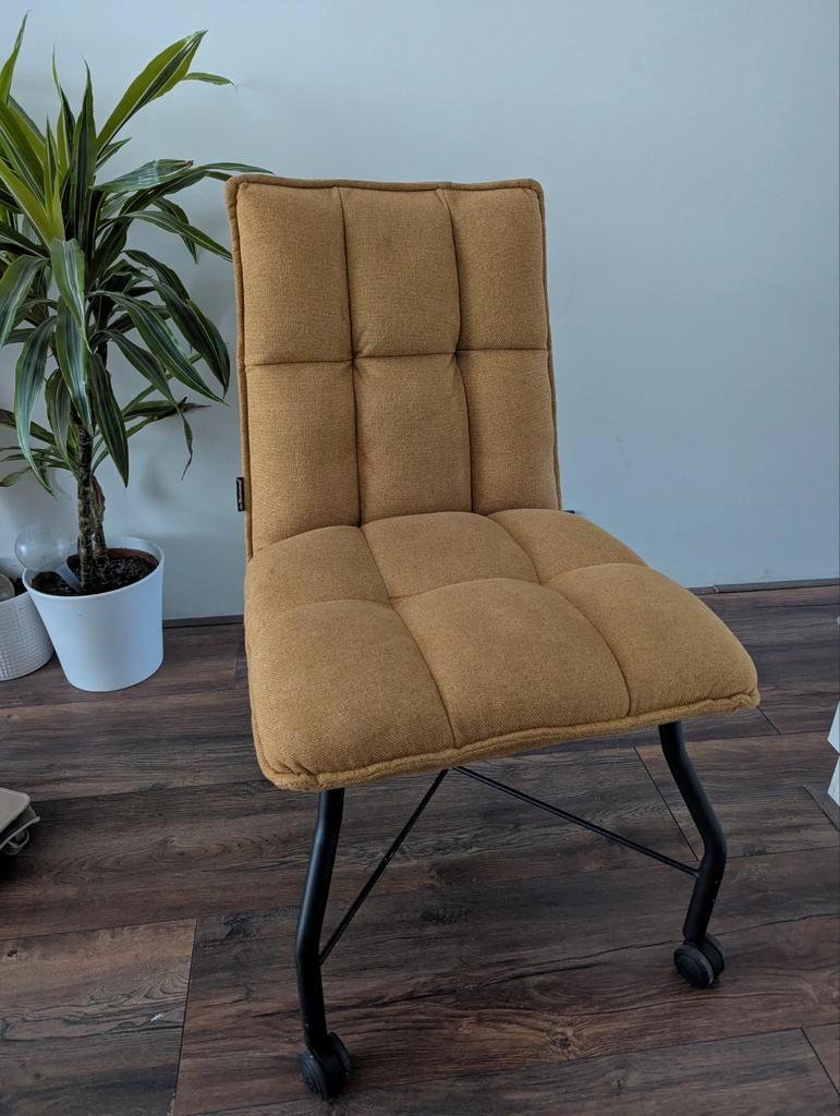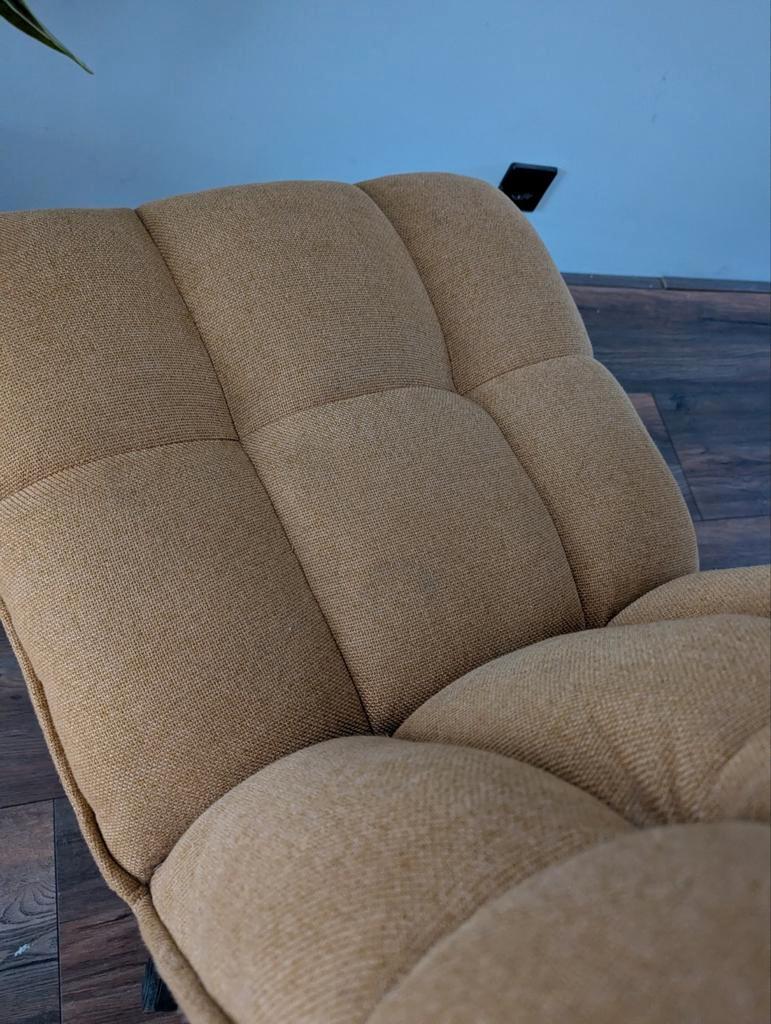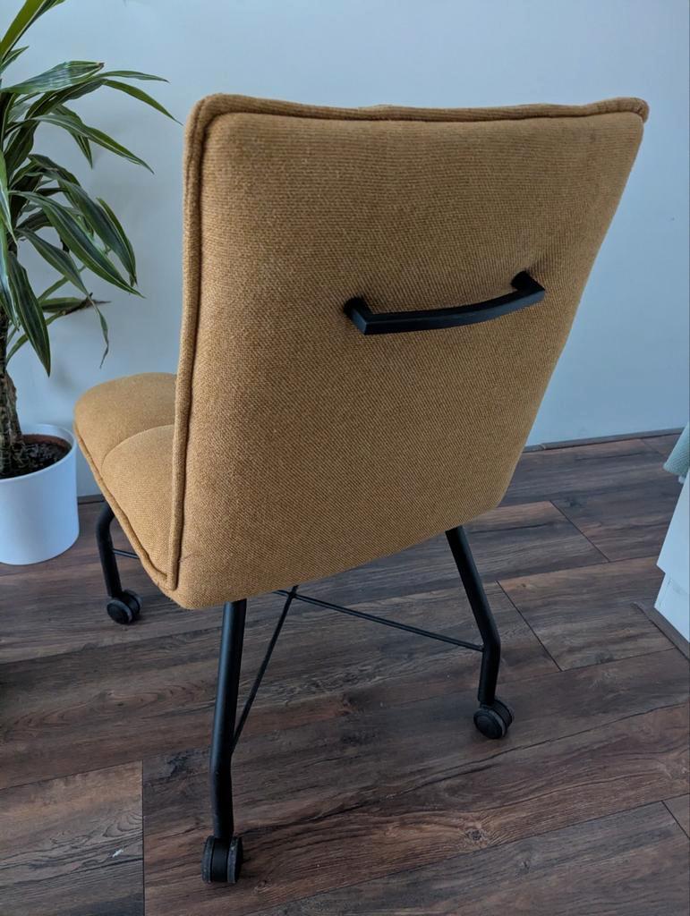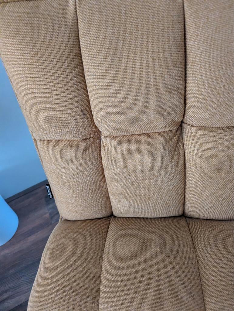 Comfortabele stoel met een zachte zitting en rugleuning. Amper opvallende vlekken in de stof, niet geprobeerd schoon te maken. De