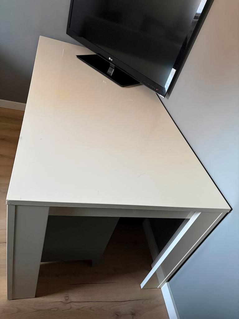 Mooie witte eetkamertafel, in goede staat. Geschikt voor 4-6 personen. Ideaal voor een kleine eetkamer of keuken. Afmetingen: (ong