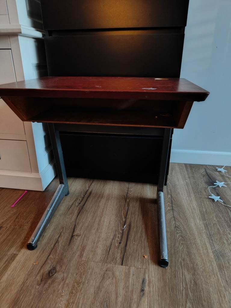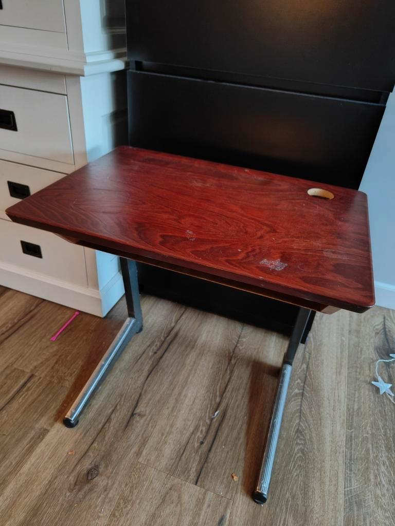 Gratis af te halen: een leuk, ouderwets schooltafeltje voor kinderen, inclusief een bijpassend stoeltje in dezelfde kleur hout. De