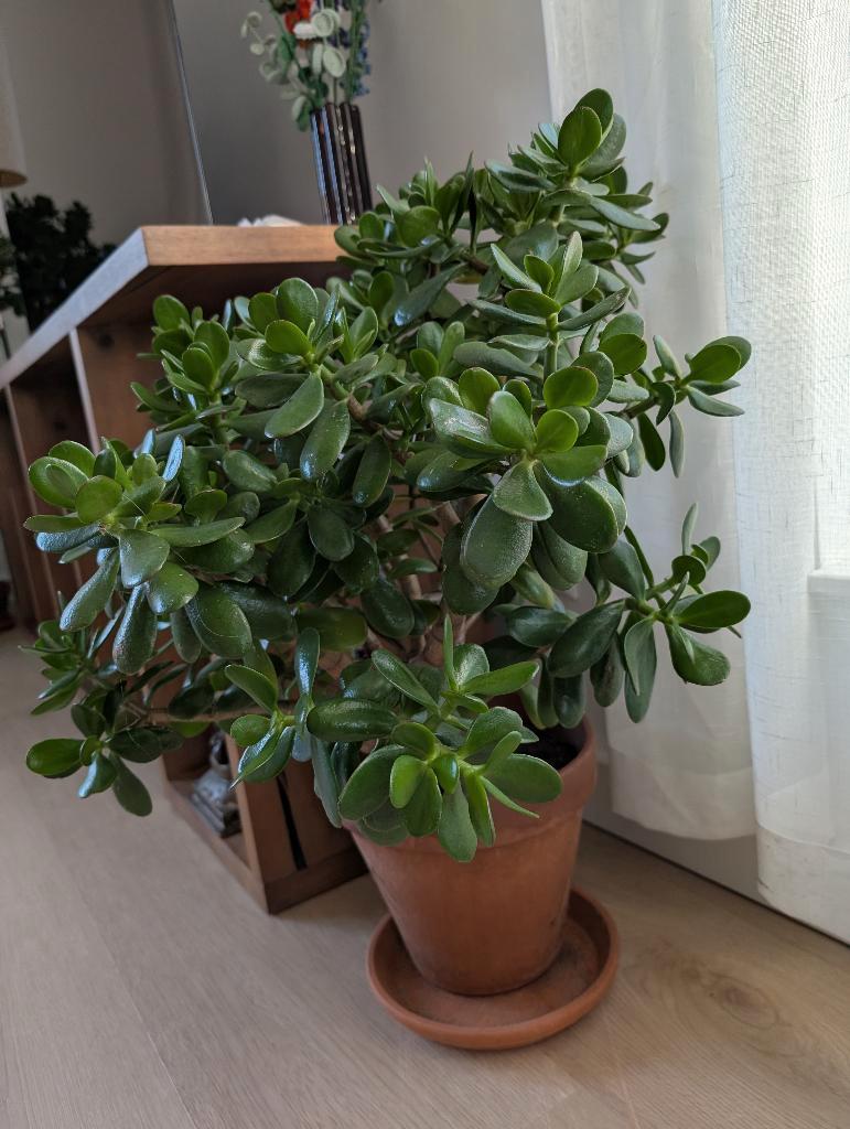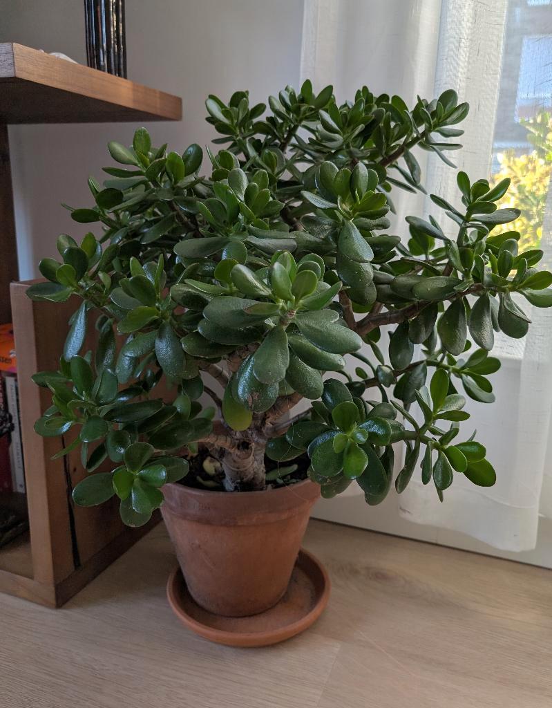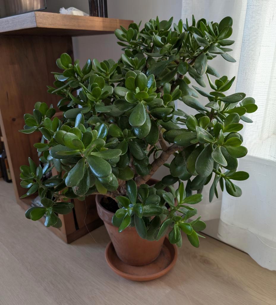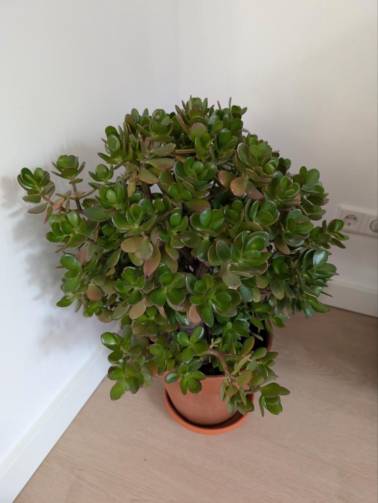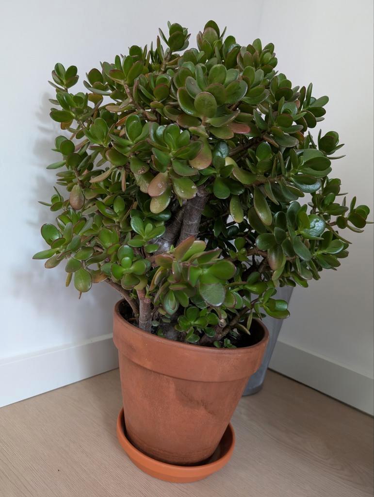 Mooie grote jadeplant zoekt nieuw baasje. Hij is niet veeleisend en kan ''s zomers in de tuin. Houdt alleen niet van tocht en n