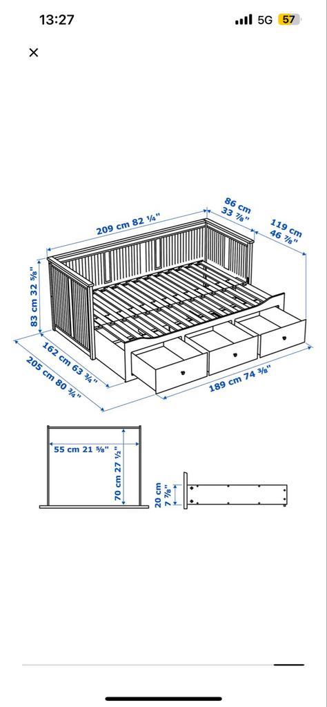Mooie hemnes uitschuifbare bed van ikea. Ideaal als logeerbed of voor kinderkamer. Kan worden uitgeschoven tot een tweepersoonsbed