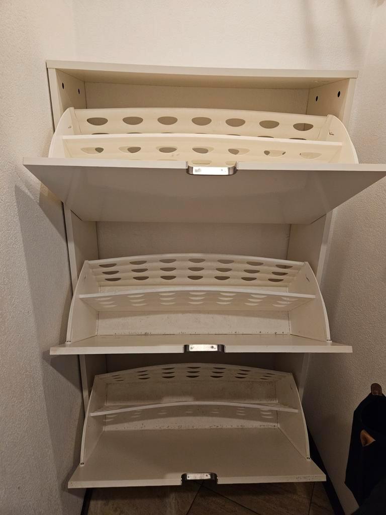 Schoenenkast en kapstok ikea hout wit - alles is gratis 79 cm breed, 32 cm diep en 25 cm hoog.