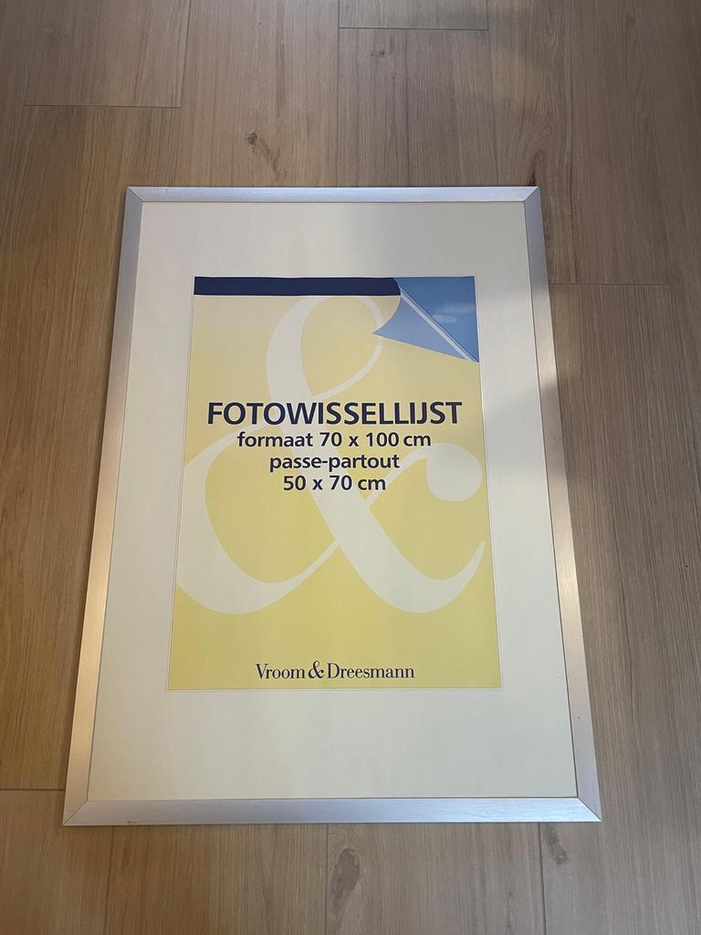 Fotowissellijst met passe-partout. Lijst is van geborsteld metaal. Geschikt voor foto''s van 50x70 cm. De lijst zelf is 70x100