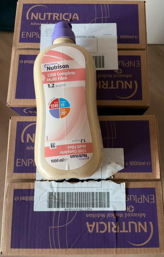 Aangeboden: 29 flessen (1l) nutricia nutrison 1200 complete multi fibre sondevoeding. Ook 10 stuks nieuwe slangen voor sondevoedin
