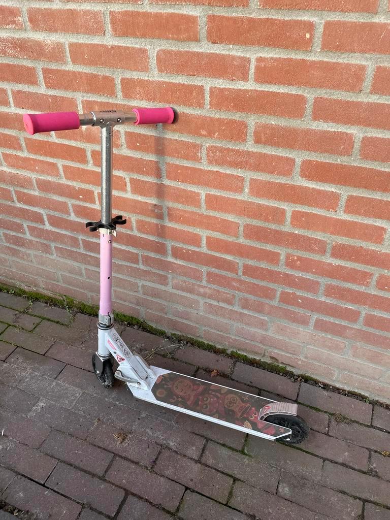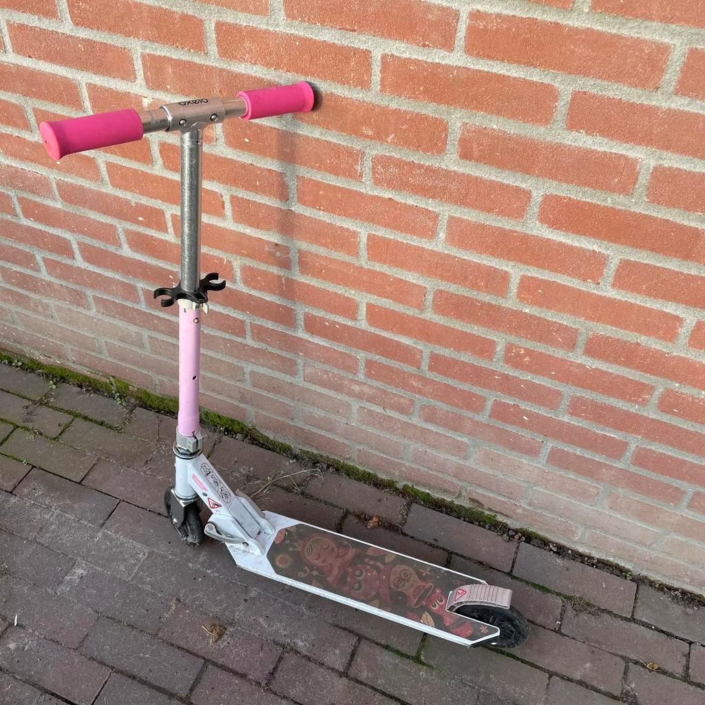 Gratis stunt step. Oxelo roze van decathlon. Goed gebruikt, maar kan nog prima mee. Hopelijk kunnen we er weer iemand blij mee mak