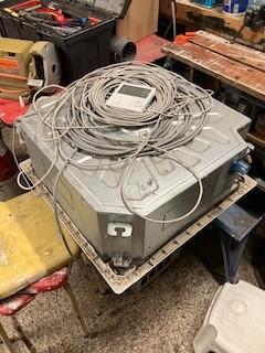Elektrische verwarming/koeling met plafondunit (geen ventilator) thermostaat, en buitenconverter met rubber schoenen. Alleen de ko