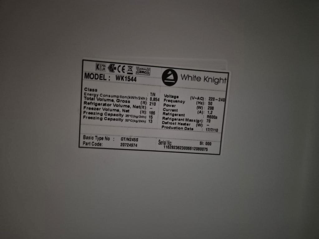 Gebruikte white knight vrieskast, model wk1544. De vrieskast is vrijstaand en werkt nog prima. Ideaal voor extra vriesruimte voor