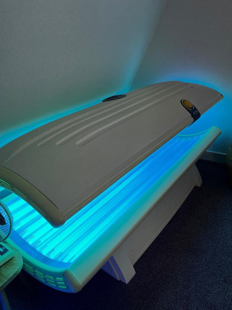 Deze zonnebank is nog haast nooit gebruikt. Alles werkt nog prima. Met gezichtsbruiner. Gratis op te halen.
