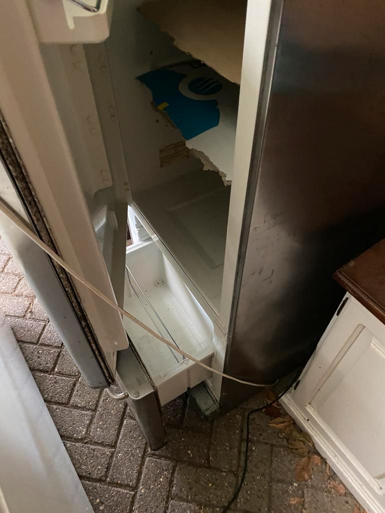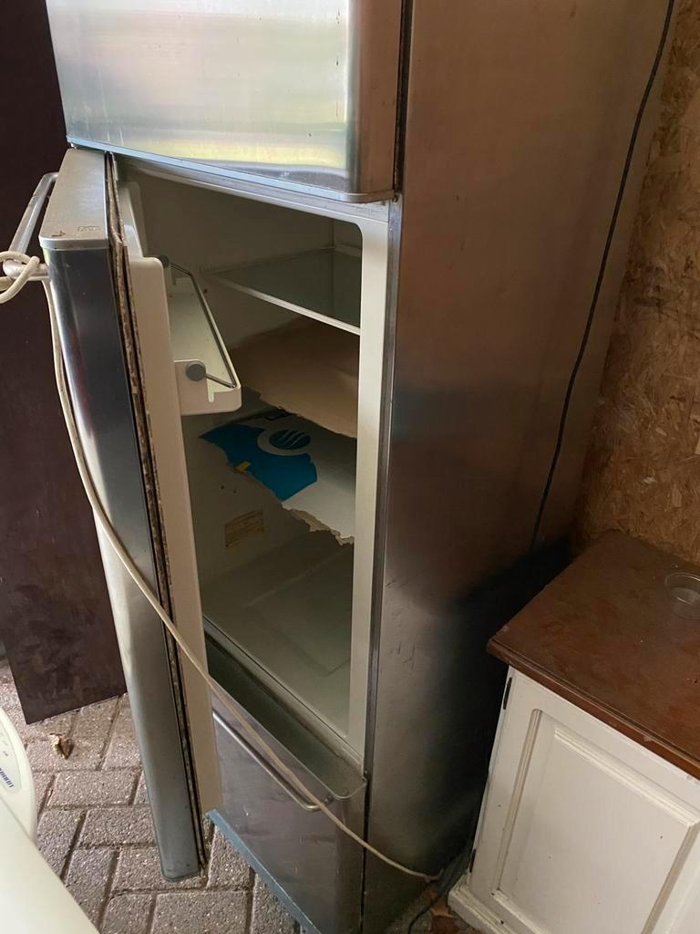 Grote koelkast 190cm hoog, alleen middelste koelgedeelte en onderste koel lade werken nog. Bovenste gedeelte was vriezer maar werk