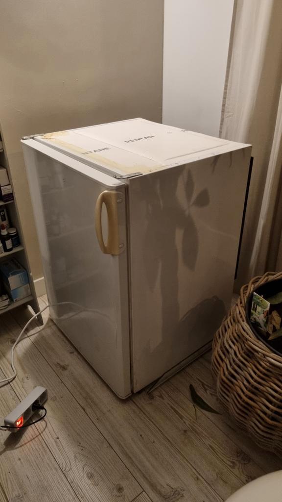 Koelkast inbouw. 82 Cm hoog, 60 cm breed, 60 cm diep. Doet het nog prima.