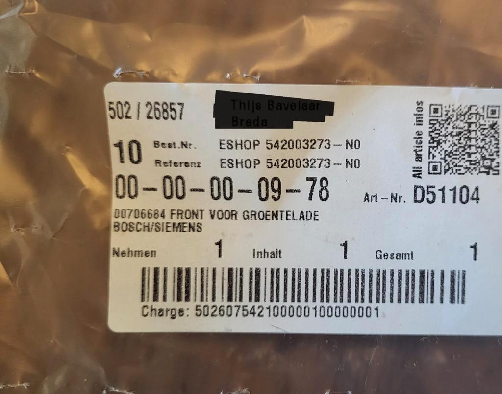 Dit weekend ophalen anders gaat ''ie weg! Frontje voor groentelade. Nieuw nooit gebruikt. Verkeerde maat besteld en te laat met