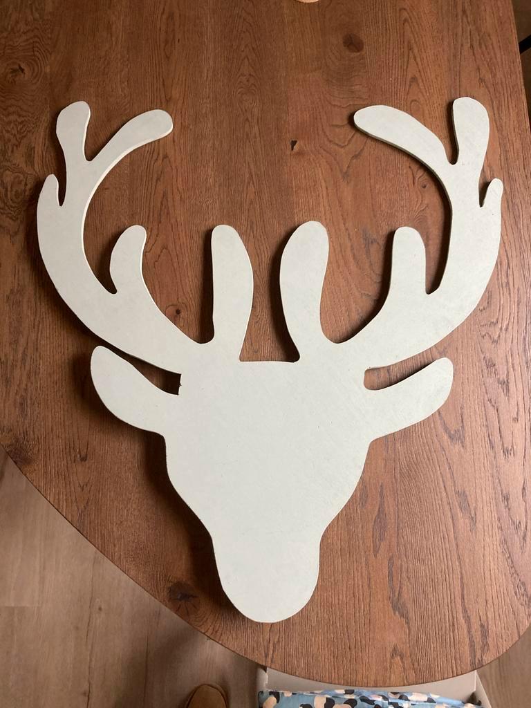 Leuke houten hert decoratie voor aan de muur. Ideaal voor de kerstperiode of als decoratie in een kinderkamer. De houten plaat is