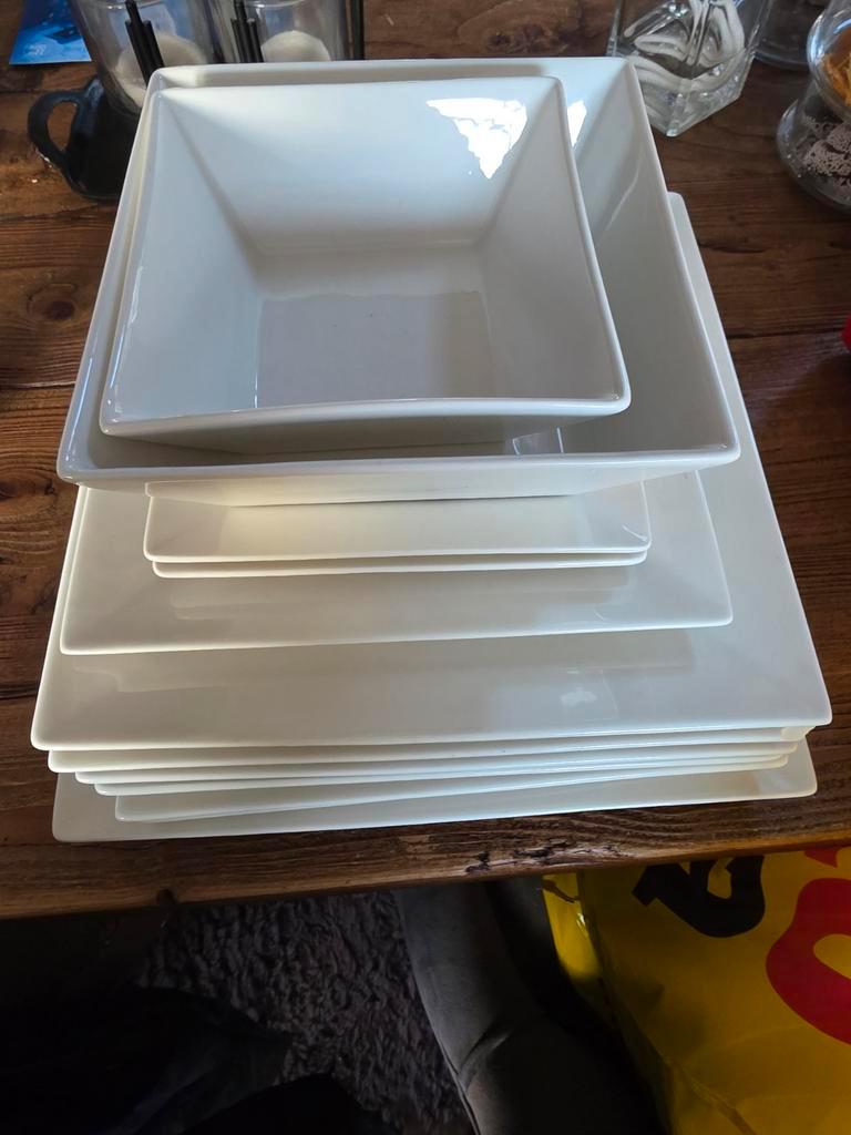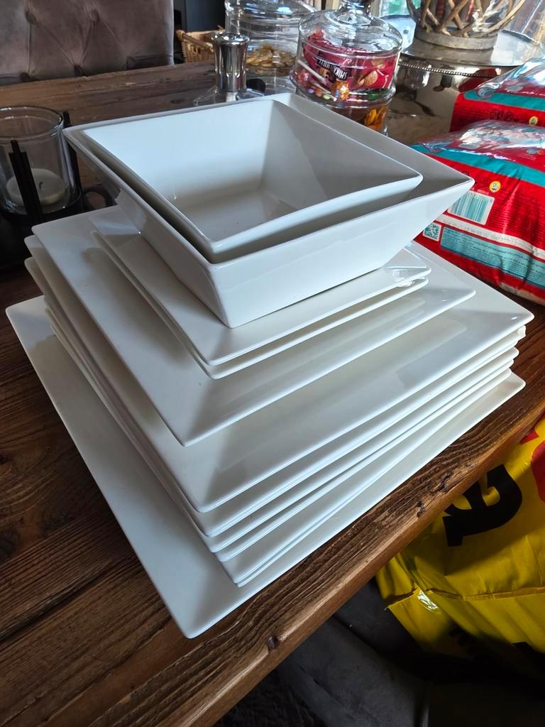 Set van diverse borden en schaaltjes. Bestaande uit 2 schaaltjes, 4 kleine bordjes, 7 grote borden en 1 heel groot bord. Ideaal vo