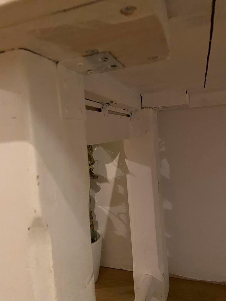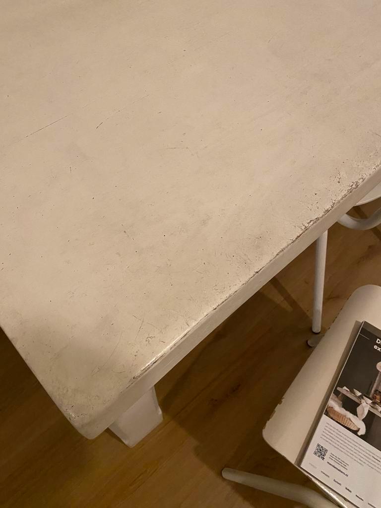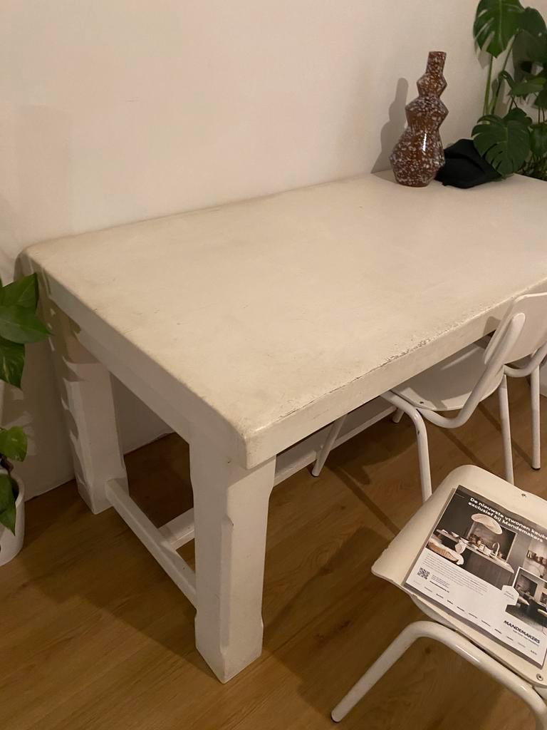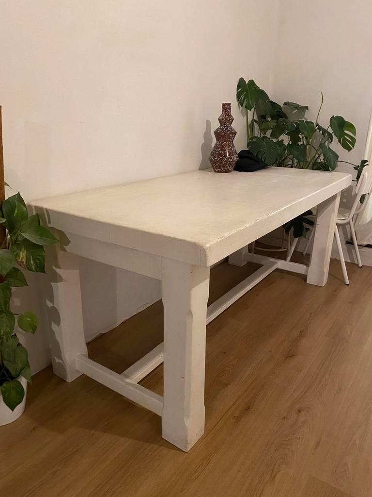 Gratis, wel even zelf ophalen en tillen. De tafel is jaren geleden wit gelakt en heeft daarna ontelbare etentjes en knutselproject