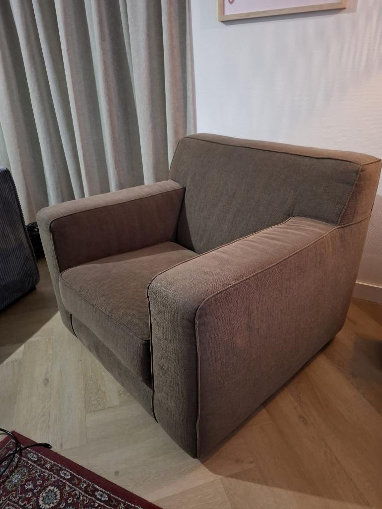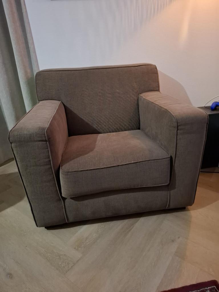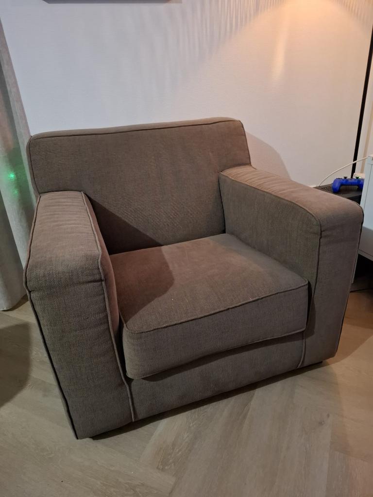 Comfortabele fauteuil. Wegens gebrek aan ruimte in nieuwe woning neem ik er afstand van. Alleen af te halen! Breedte × diepte is o