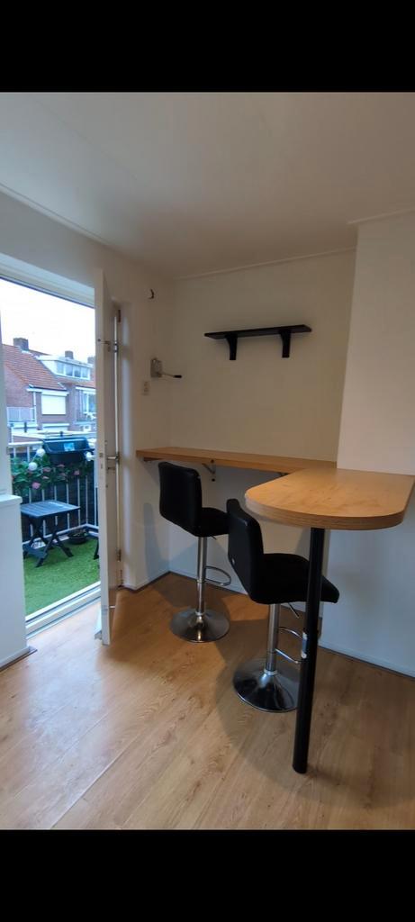 Twee zwarte barkrukken, zacht gevoerd, gratis mee te nemen. Een van de twee heeft een schram op de achterkant. Verder in goede sta