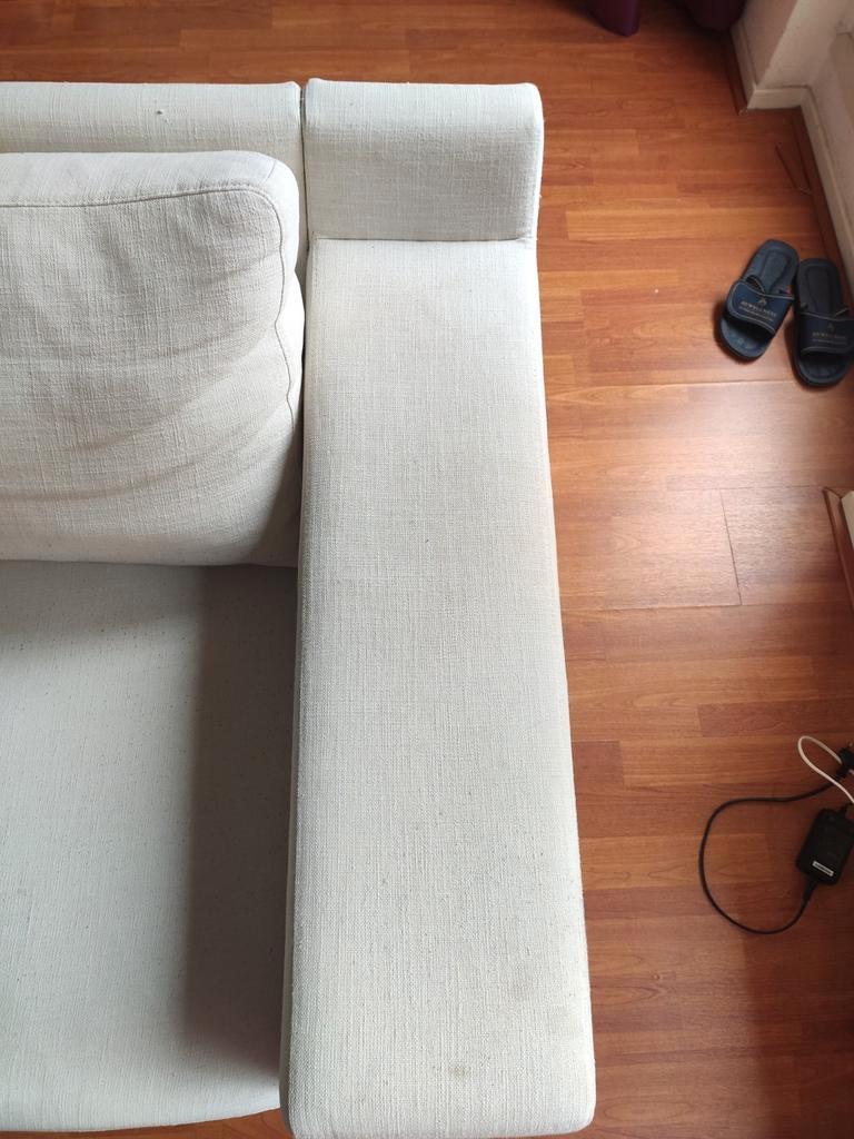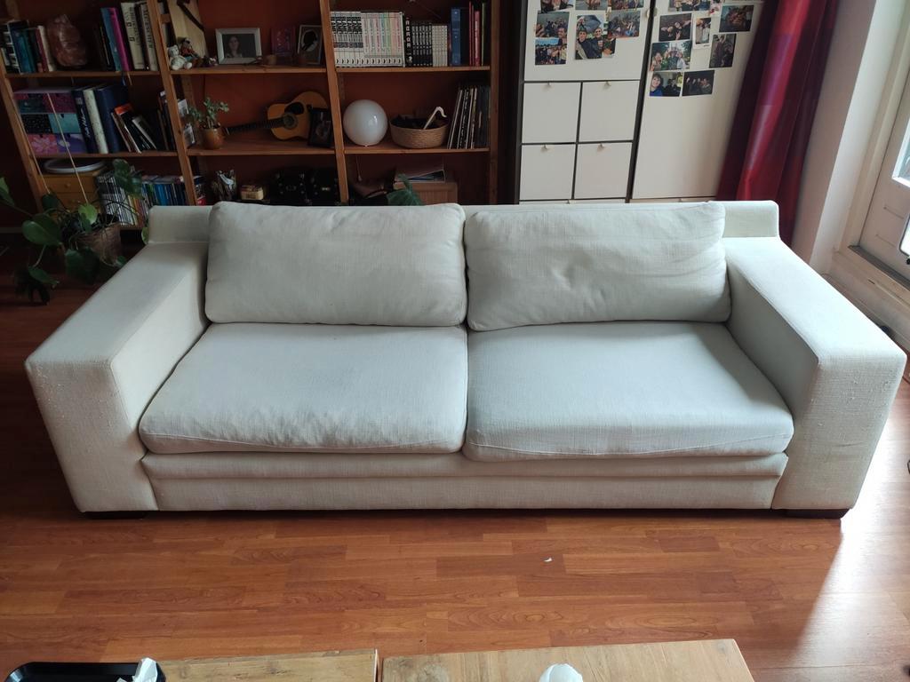 Gebruikte witte bank, zit erg lekker. Heeft wat vlekjes en beschadigingen, zie foto''s breedte 95 cm lengte 228 cm gratis ophal