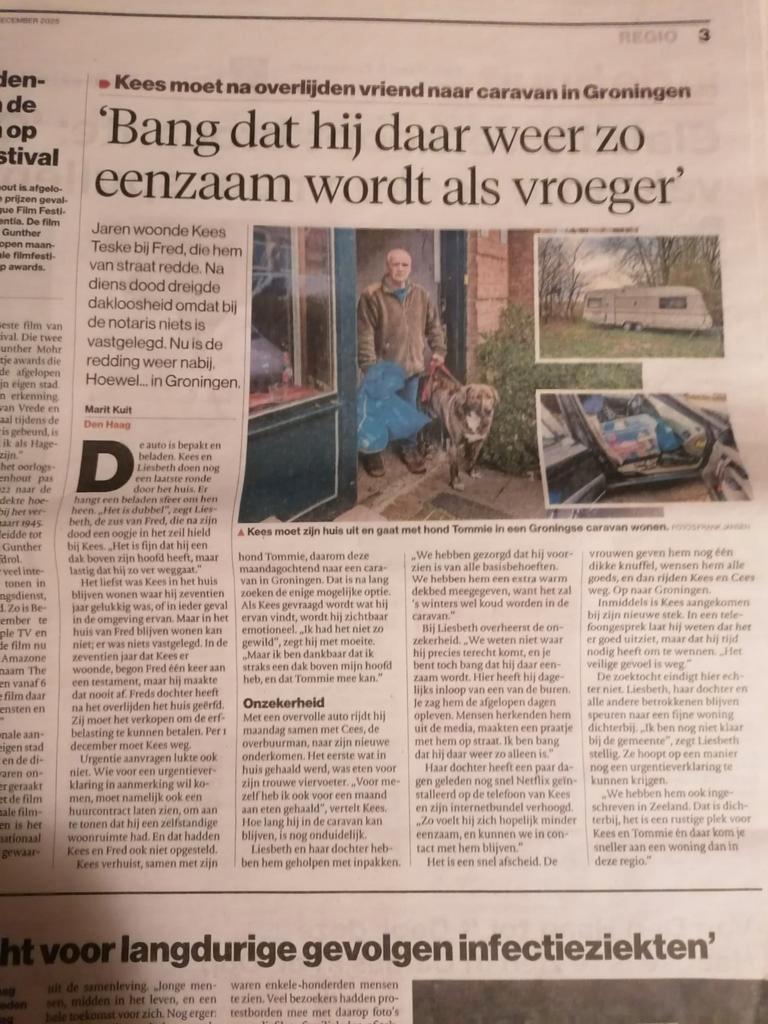 Goedemiddag, wij zijn voor onze vriend kees en zijn trouwe viervoeter op zoek naar een uitzet. Kees is de beste vriend van mijn wi