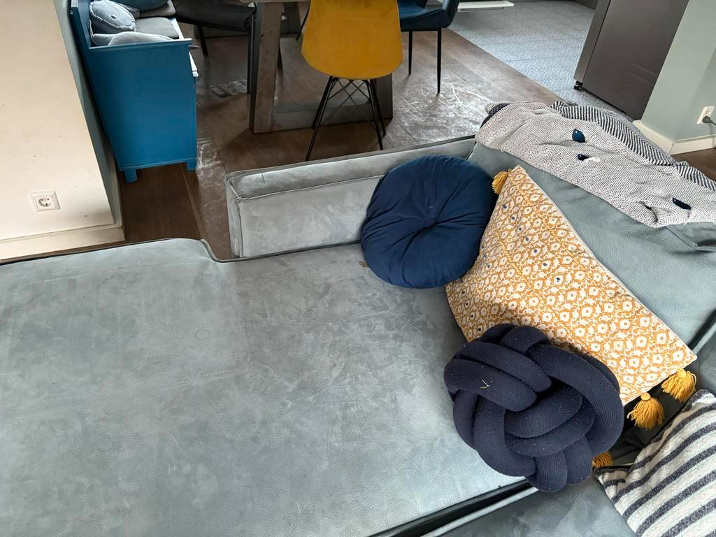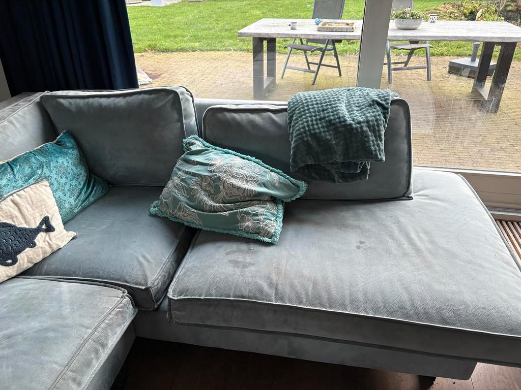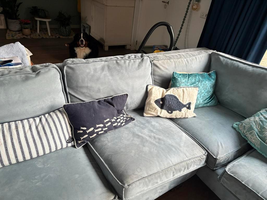 Comfortabele u-bank met afmetingen 3,50 meter bij 2 meter en een zitdiepte van 75 cm. Ideaal voor grote gezinnen of wie van ruim z