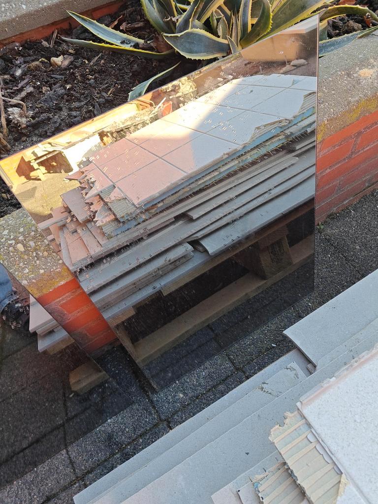 Oude spiegel, mogelijk geschikt voor een project of om te hergebruiken. Heeft lichte gebruikssporen, maar is nog in redelijke staa