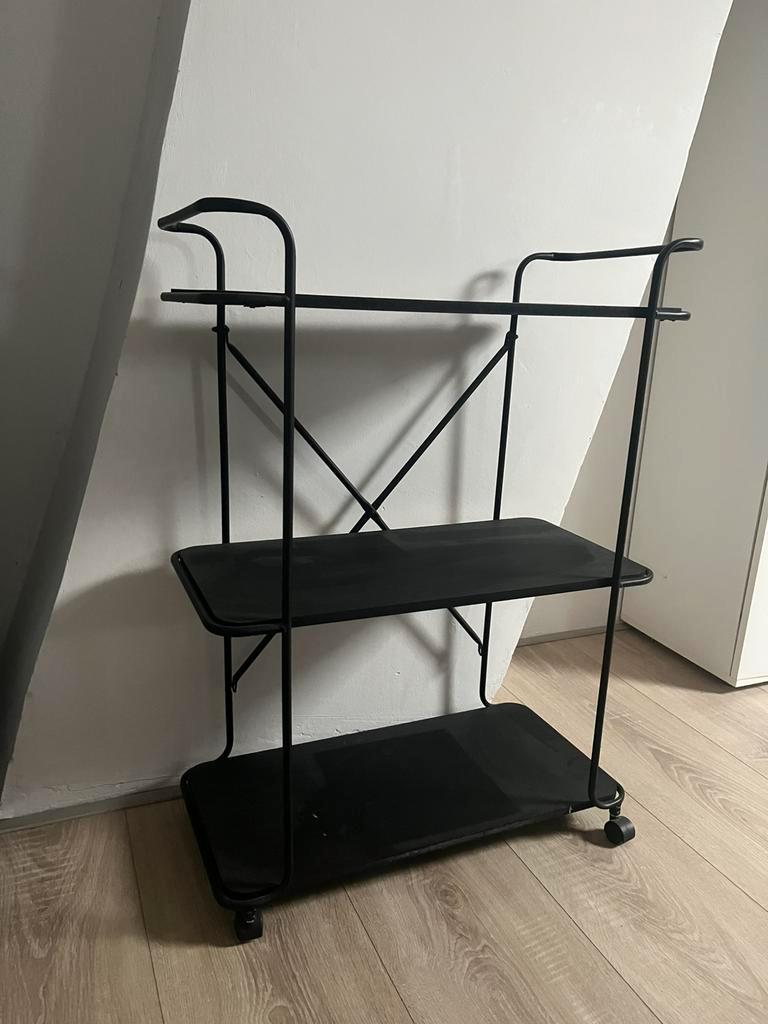 Ijzer rekje met drie houten planken. Mist twee schroefjes maar kan alsof gebruikt worden of schroefjes toevoegen.