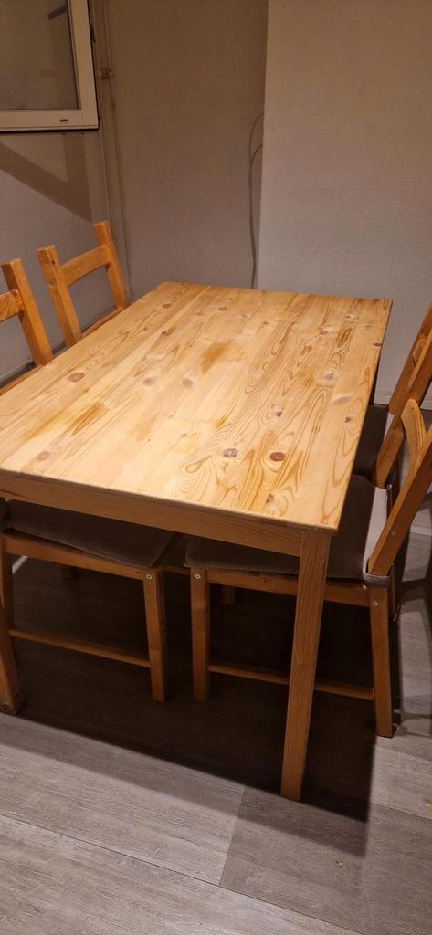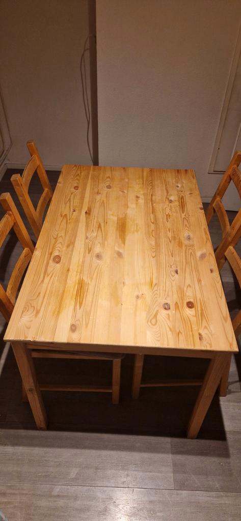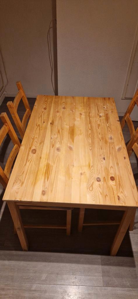 Mooie, gebruikte houten eettafel. Geschikt voor vier personen. De tafel is rechthoekig en gemaakt van grenenhout. Ideaal voor een