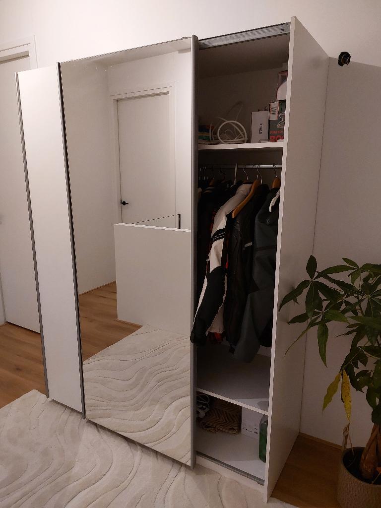Gratis af te halen kledingkast met schuifdeuren. 1 Deur volledig spiegel beide zijden hebben hang en leg. Breedte 150cm hoogte 200