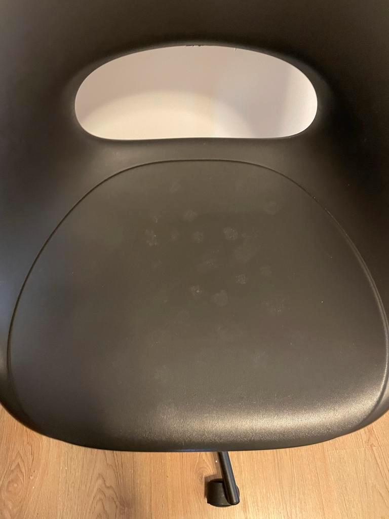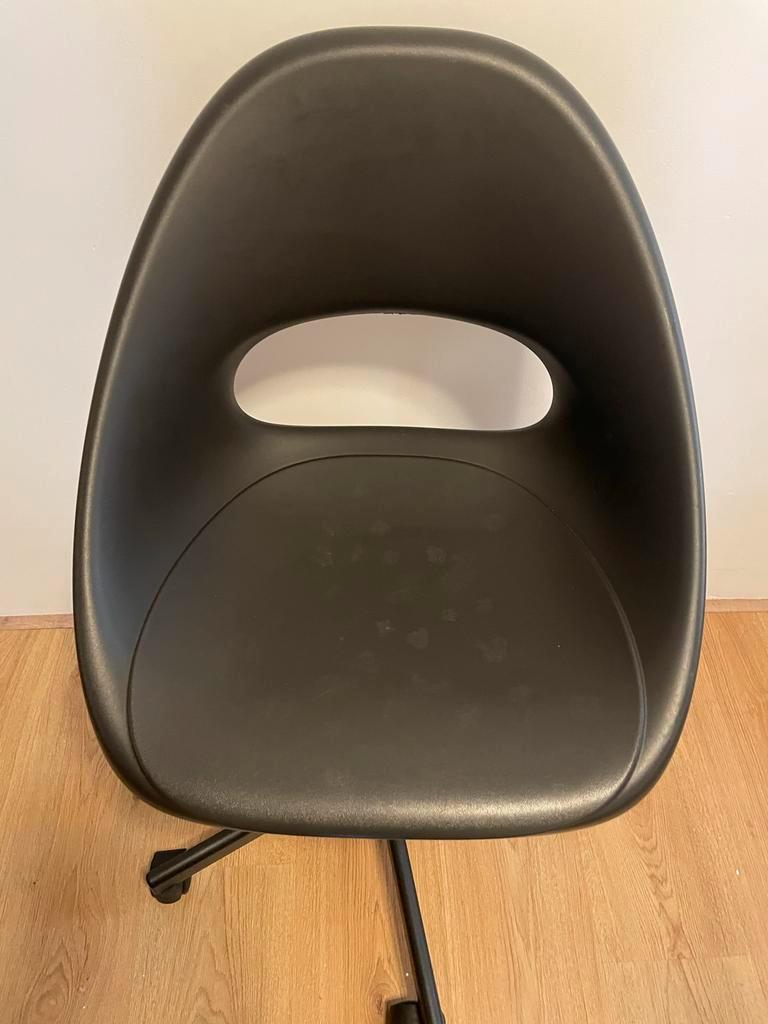 Gebruikte zwarte bureaustoel. Verstelbaar in hoogte en draaibaar. Heeft gebruikssporen op de zitting, zie foto''s.