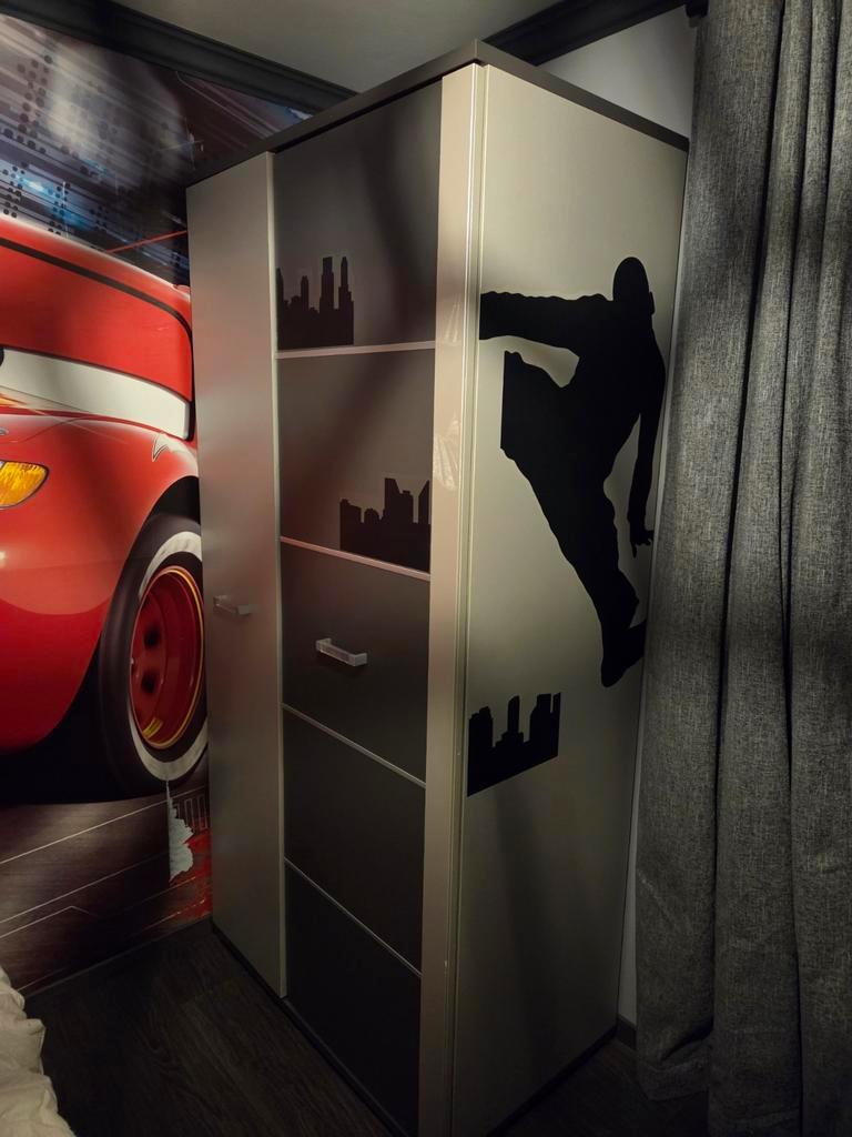 Een leuke en praktische kledingkast, perfect voor een kinderkamer. De kast heeft een speelse print en biedt voldoende opbergruimte