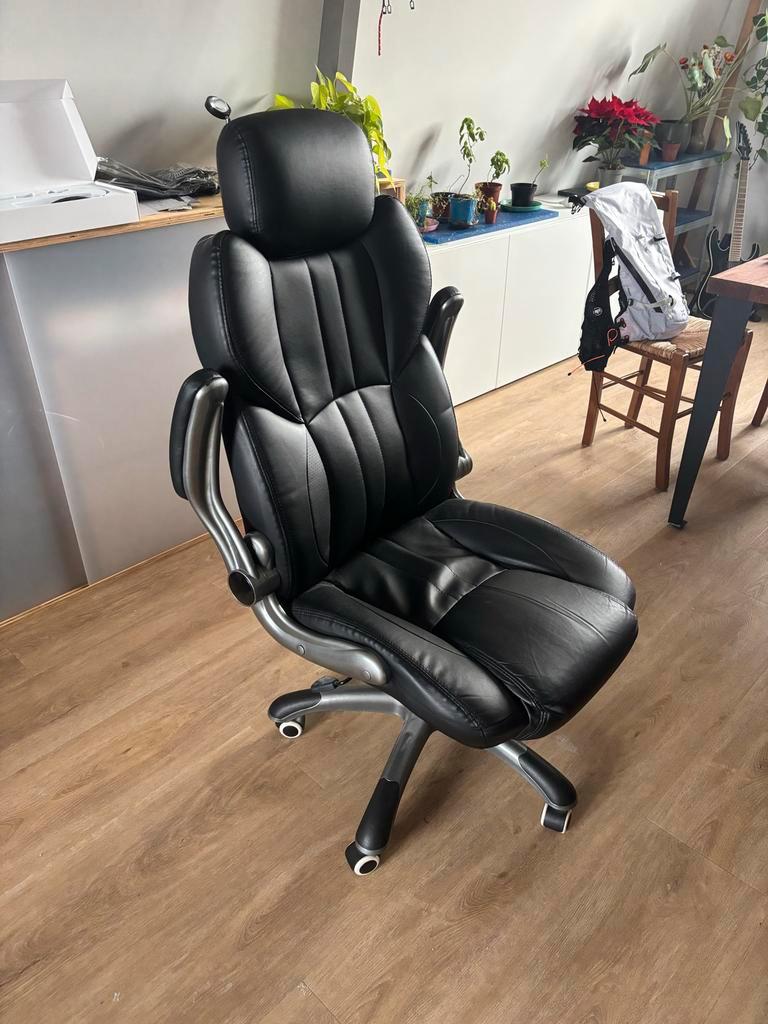 Een comfortabele bureaustoel, ideaal voor lange werkdagen. De stoel is in goede staat en biedt goede ondersteuning. Gemaakt van le