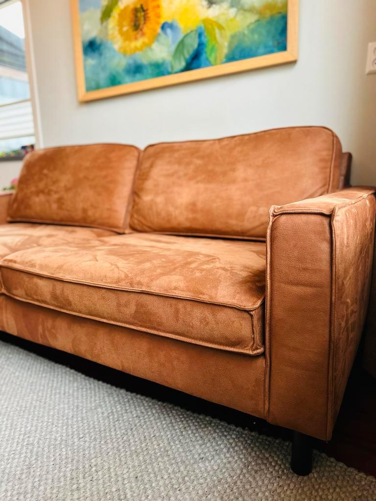 Comfortabele bank met afneembare en wasbare losse kussens. De bank is in goede staat, zonder schade. Afmetingen: hoog 75 cm, zitho