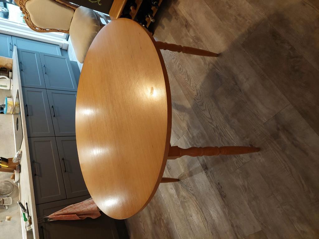 Doorsnee: 111cm hoogte: 77cm op te halen vanaf 17 december. De poten kun je los schroeven van het blad. Wij zorgen dat de poten al