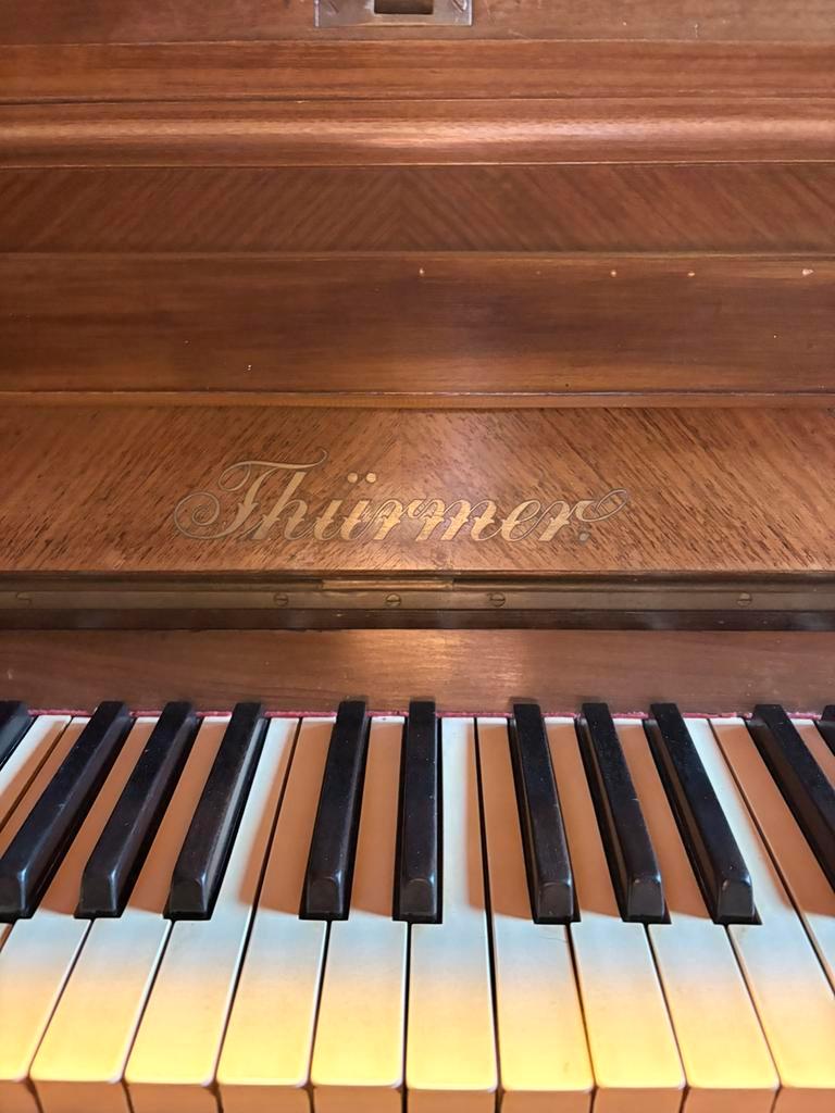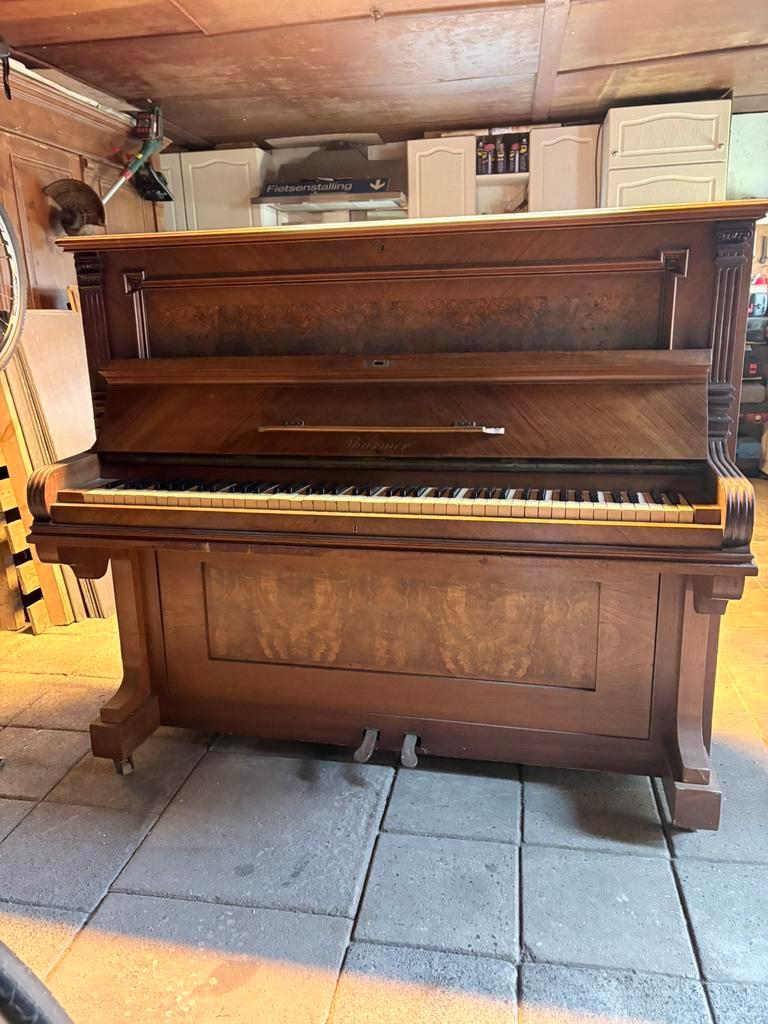 Thürmer piano uit 1890. Niet meer te stemmen of bruikbaar als piano. Heeft beschadigingen, zie foto’s. T.e.a.b.