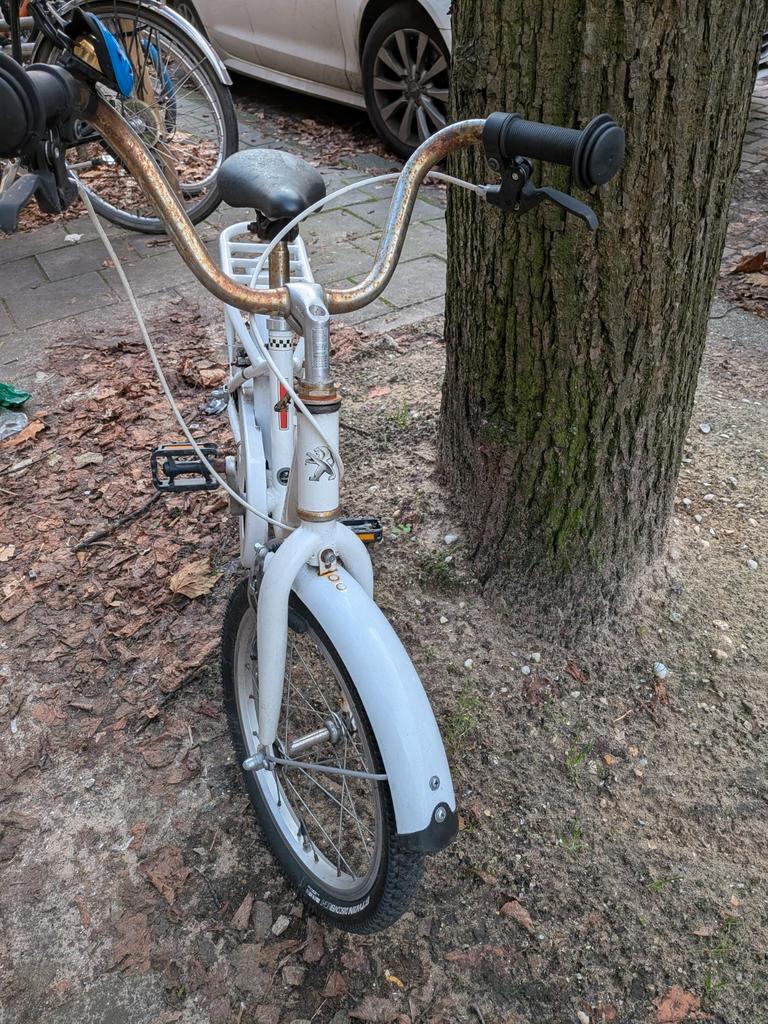 Gekocht in frankrijk, een beetje roestig omdat hij een tijdje buiten heeft gestaan toen ons kind eruit groeide, maar de fiets is n