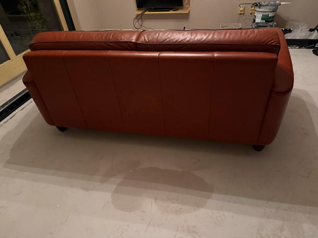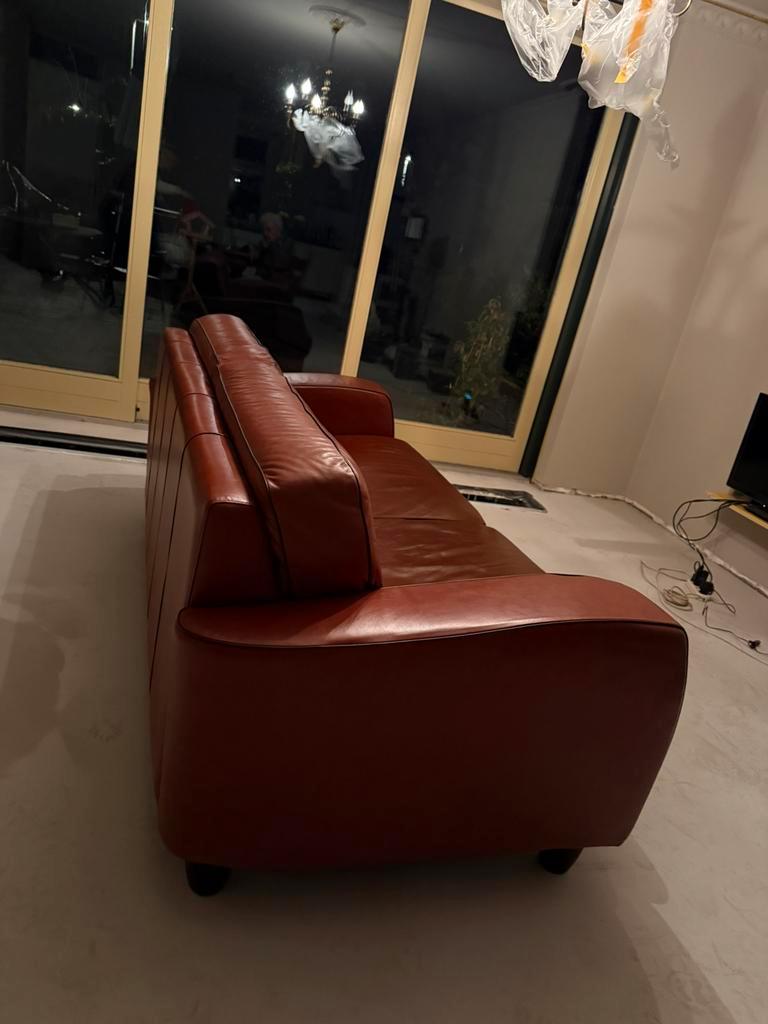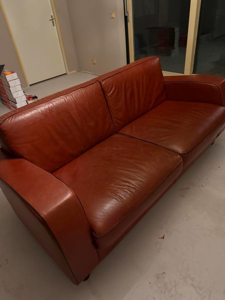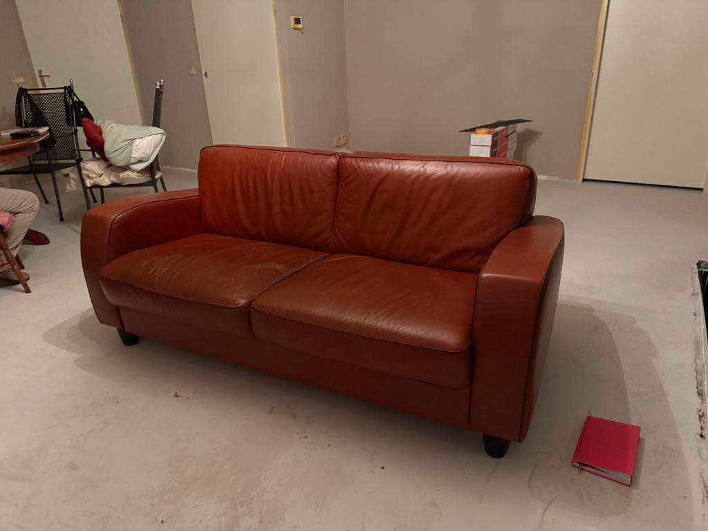 Gratis af te halen (voor as woensdag) bruine lederen 2 zitsbank. 175 Lang, 85 breed