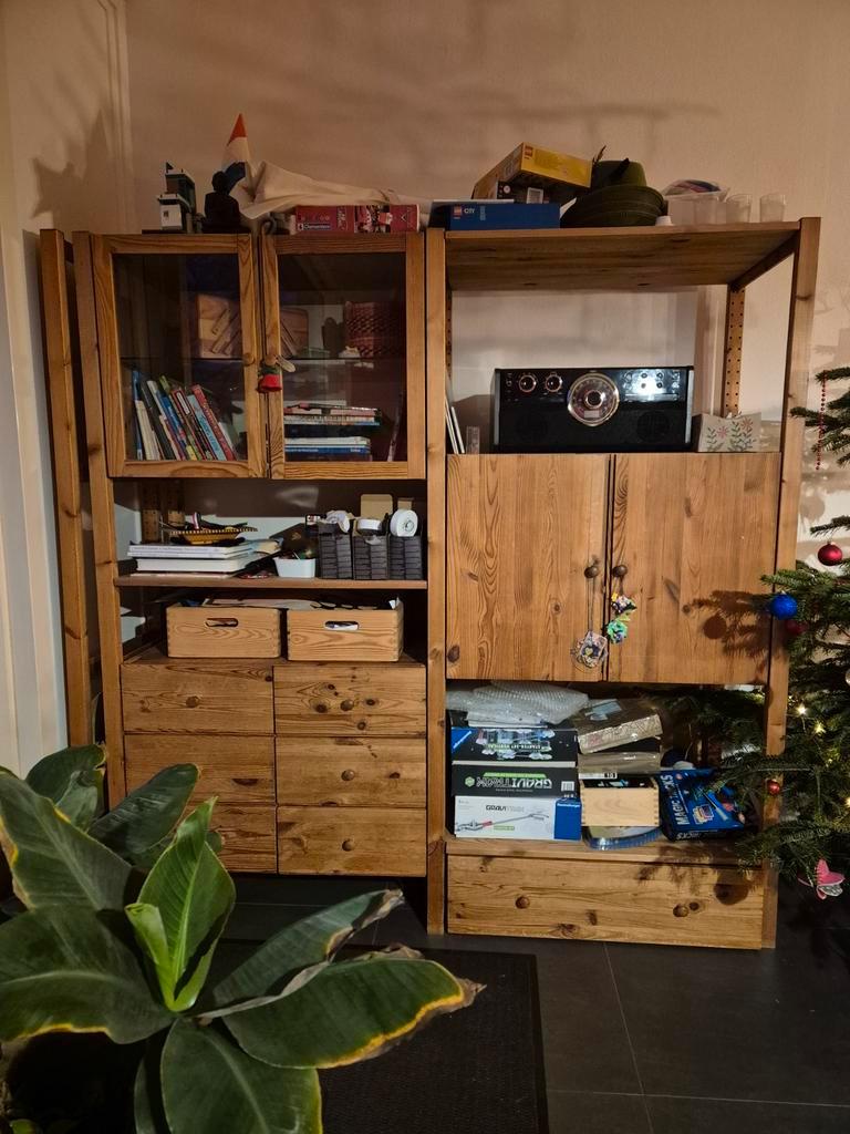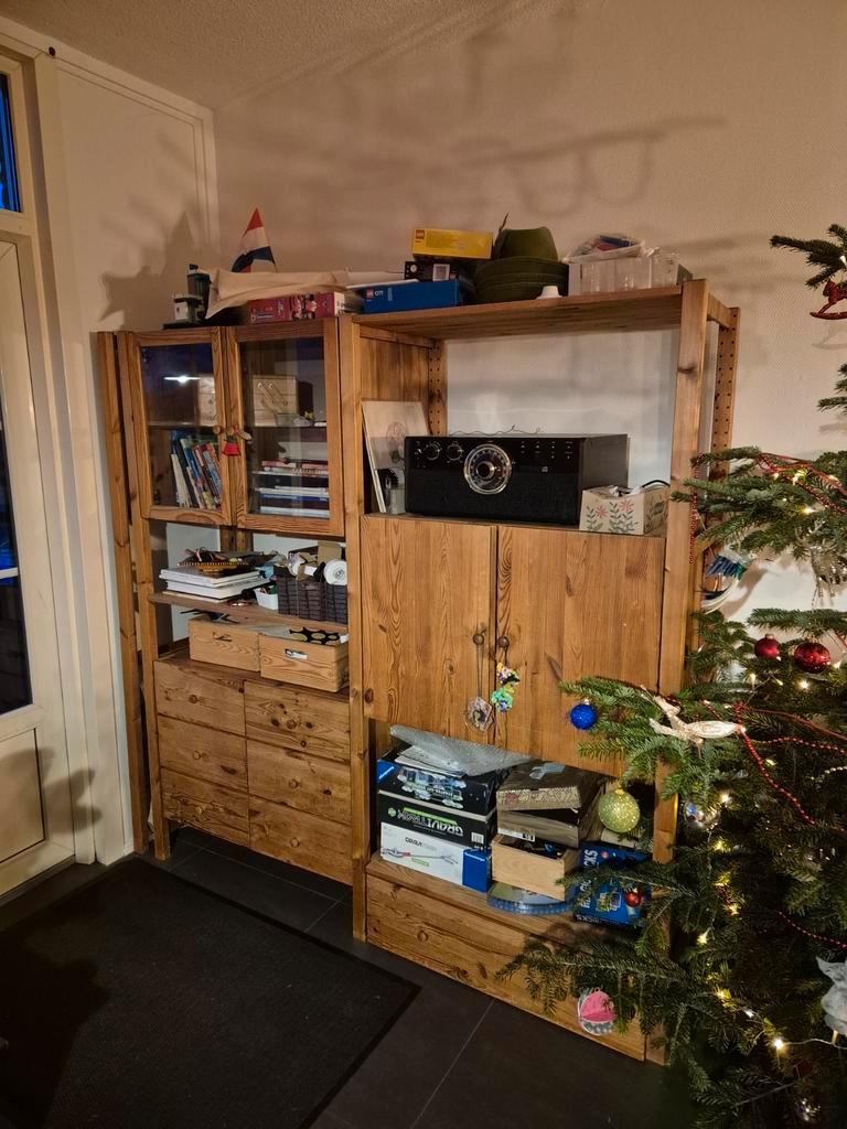Mooie houten wandmeubel / kast met veel opbergruimte. De kast is gebruikt. Ideaal voor in de woonkamer, slaapkamer of studeerkamer