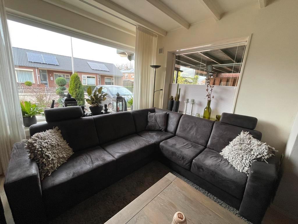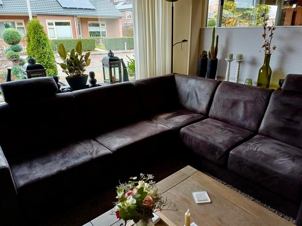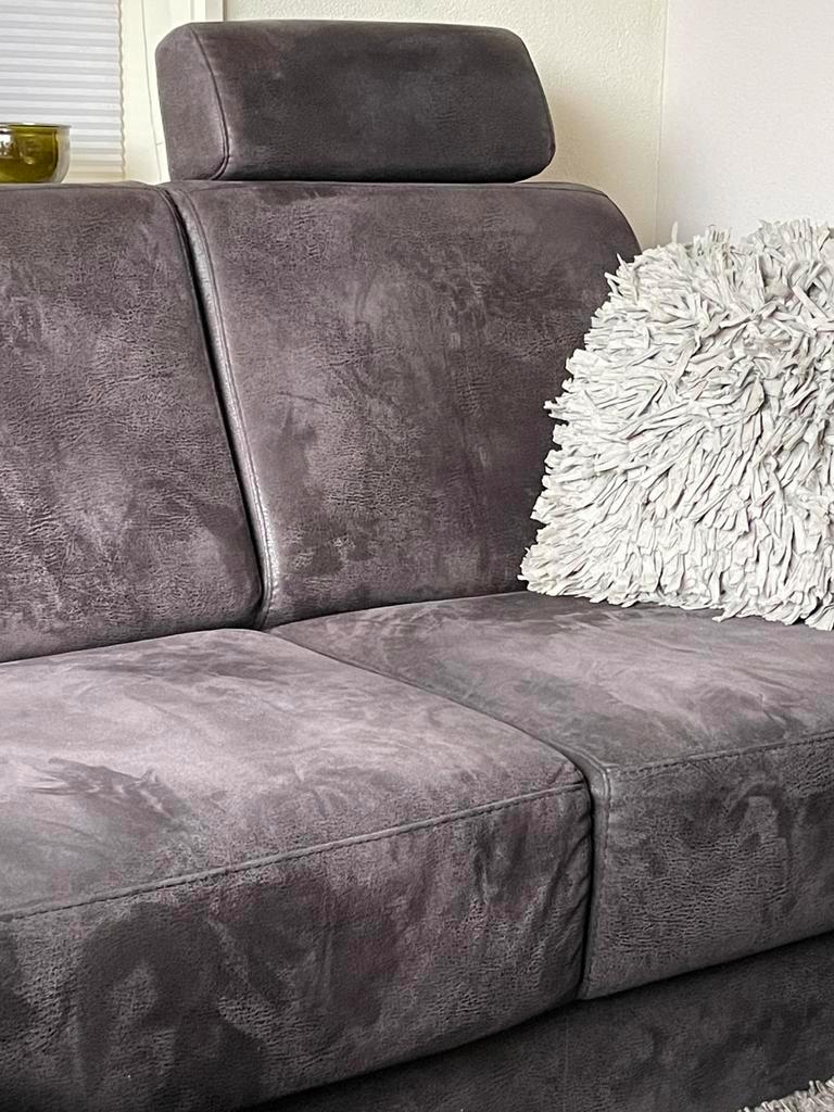 Voor eind december op te halen, gratis nette hoekbank van microvezel gebruikt , 1 rugkussen is ingedeukt maar met kussen ervoor ni