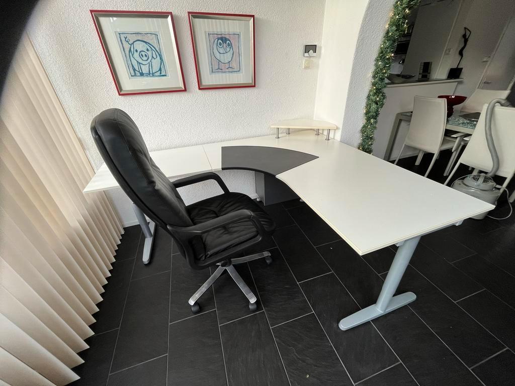 Complete set: ikea bureau met een comfortabele bureau stoel. Het bureau is in goede staat en biedt veel werkruimte. De stoel is ve